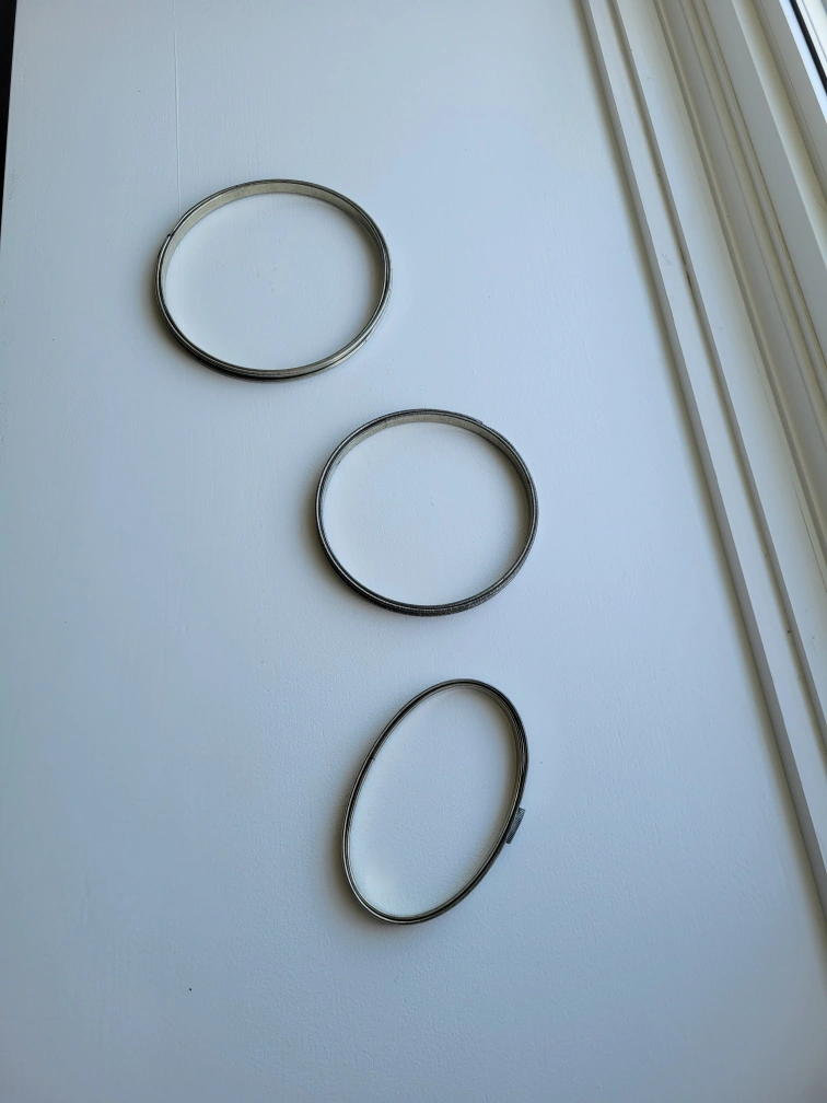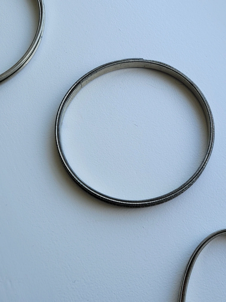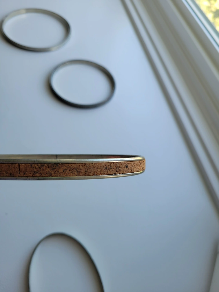Vintage 1950s Metal Cork Lined Embroidery Hoops! Individual Pricing 7" Round 6" Round 6" Oval $20/3 firm Great Condition Fennell and Upper gage Hamilton Please see all my estate listings