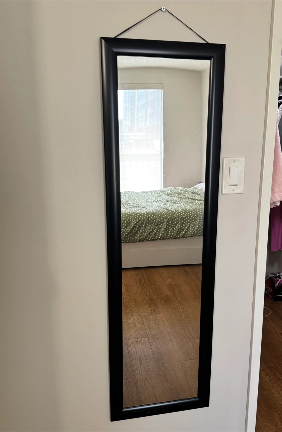 Selling a simple black framed mirror. It's in great condition and ready to hang in your home!
