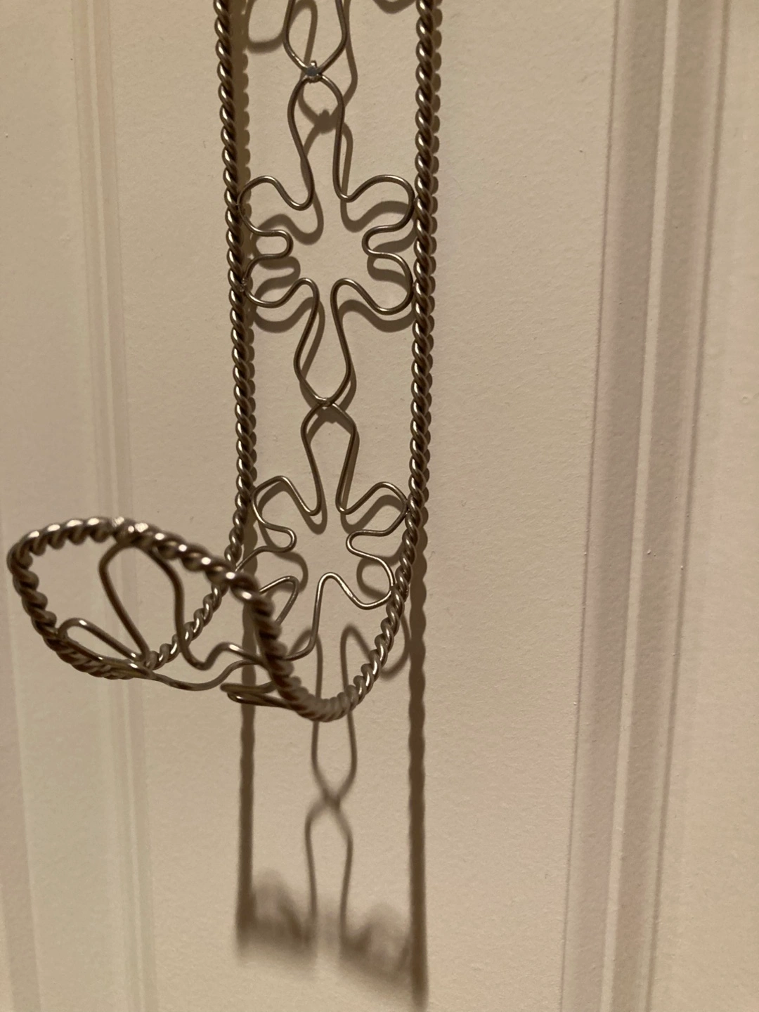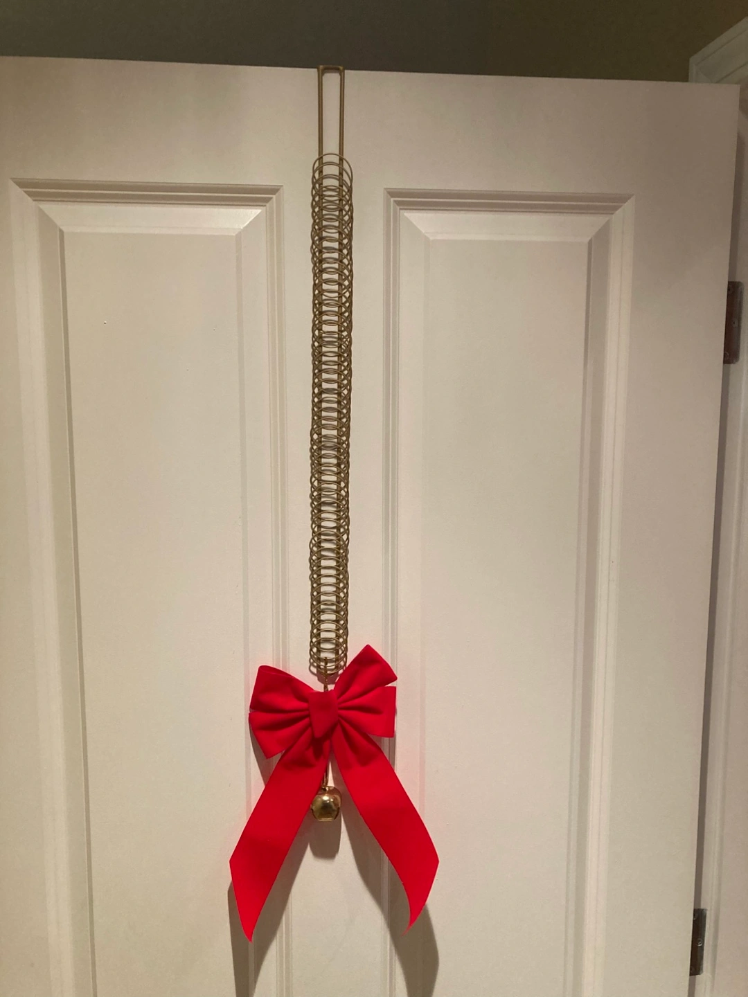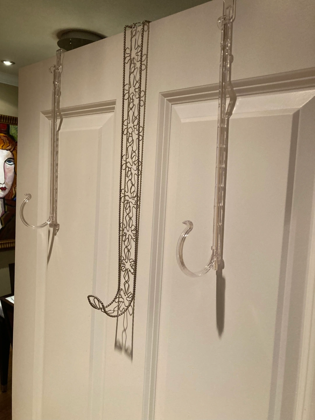 Here are some over-the-door hangers perfect for displaying Christmas cards (see gold hanger with loops in first and second photo) or Christmas wreaths or other decorations (see phots 3,4 and 5 of silver colour metal and clear acrylic hangers). They're in great condition and ready to use!
