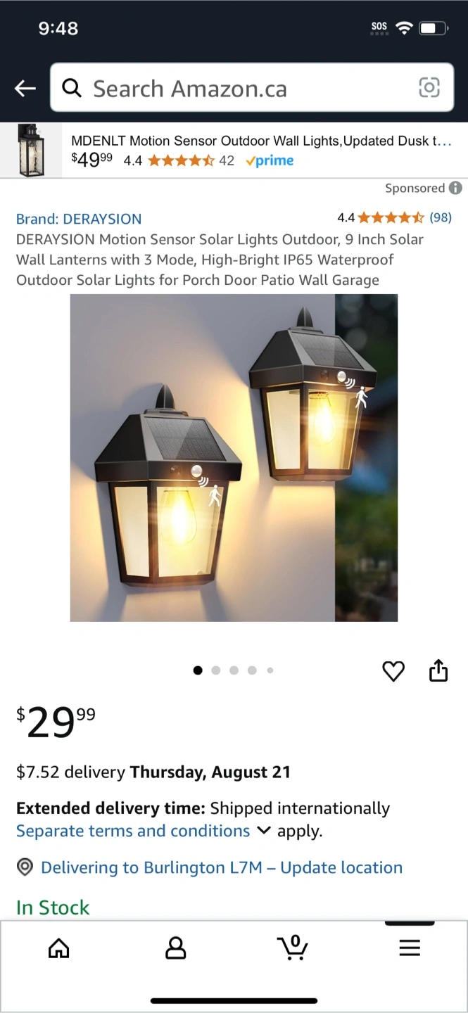 Selling a set of two DERAYSION Solar PIR Sensor Wall Lights! These outdoor lights feature a motion sensor and turn on automatically at dusk. Perfect for adding some light to your porch, door, patio, or garage. They are brand new and come in their original box