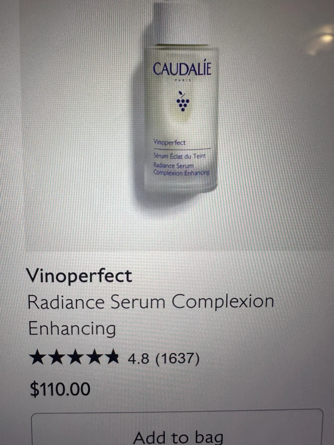 I'm selling Caudalie Vinoperfect Radiance Serum Complexion Enhancing. It's a serum for face, neck & décolleté. It's oil free and contains Viniferine 1000, Squalane d'Olive. 30mL - 1 fl oz. Retails for $110 each. 3 items available