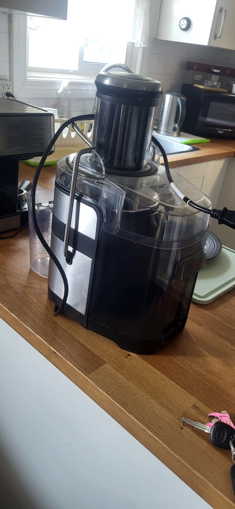 This juicer features an 1100-watt motor and a 3.5-inch Super Chute to minimize pre-cutting of fruits and vegetables. The 34 oz. pitcher includes a froth separator and lid for foam-free juice.
