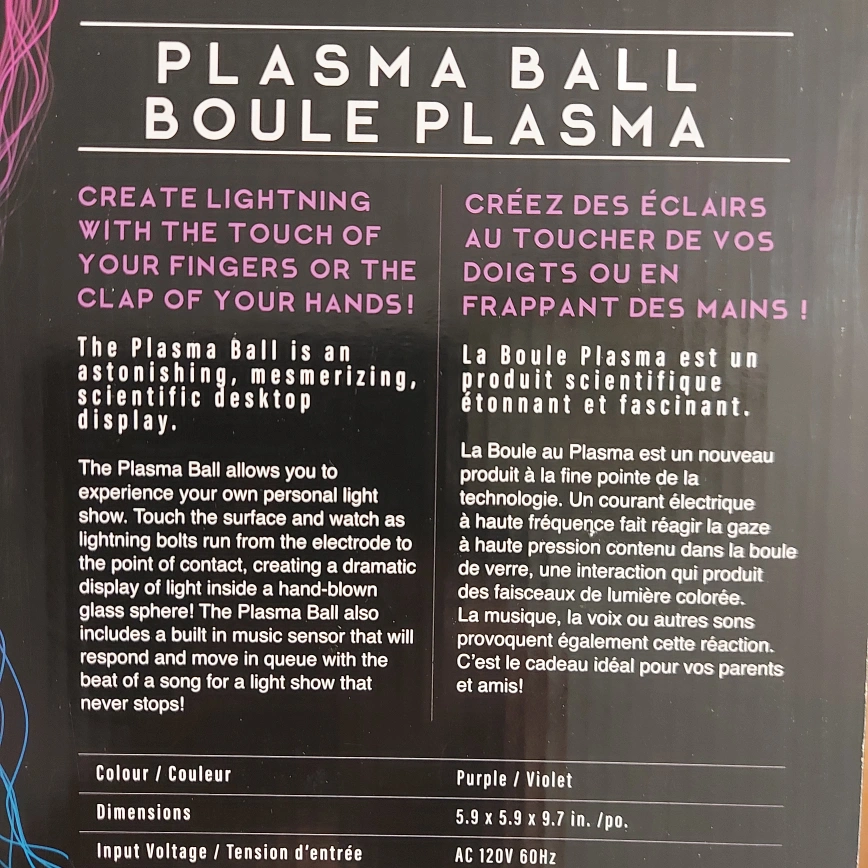 Check out my other listings for even more great finds! It's in great condition - As NEW This captivating Plasma Ball Lamp is gently used and features a mesmerizing display of light that reacts to your touch, creating an interactive and visually stunning experience. Here are some details: * Glass sphere diameter: 6 inches * Base material: Plastic * Power source: Plug-in * On/Off switch --- Special Offer: Bundle this item with other items from my listings for amazing discounts! Item is available as long as the listing is visible. Pickup Only: All sales are "As is" and final! No delivery, returns, or refunds are offered!