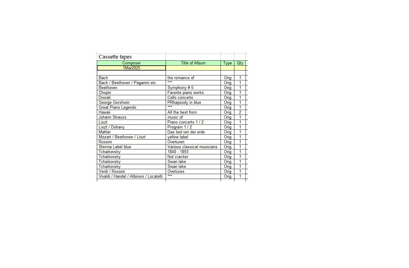 3$ each or can be sold as lot Selling a collection of classical music cassette tapes featuring various composers such as Bach, Beethoven, Chopin, Dvorak, Mahler, Tchaikovsky, and more! Perfect for anyone who enjoys classical music or collects vintage tapes