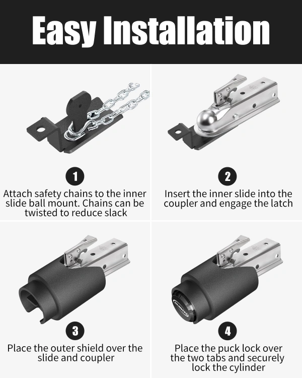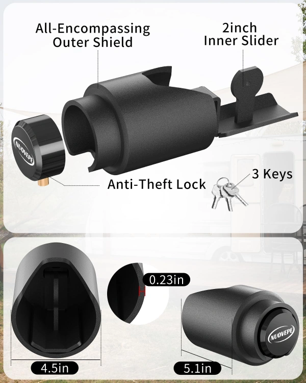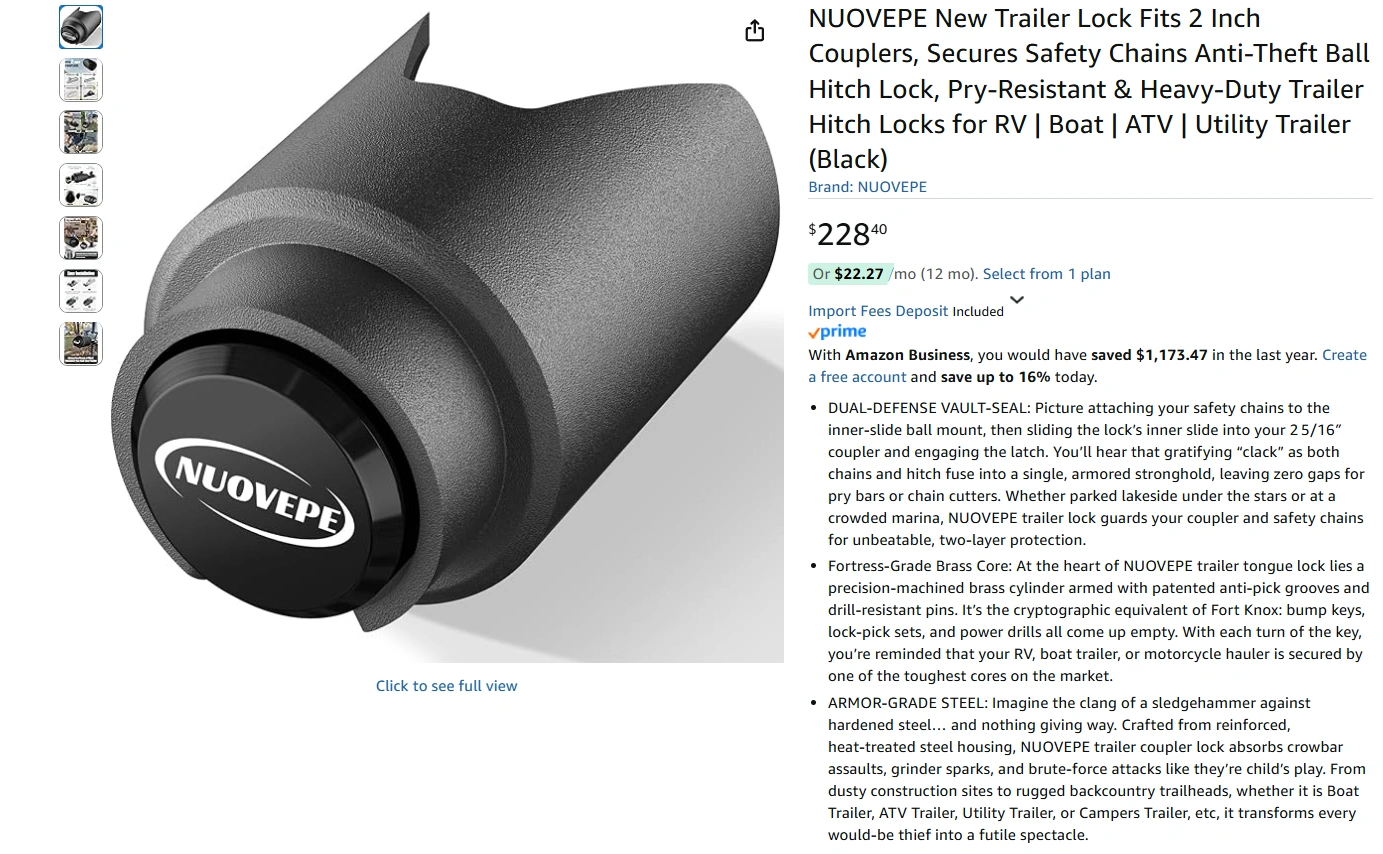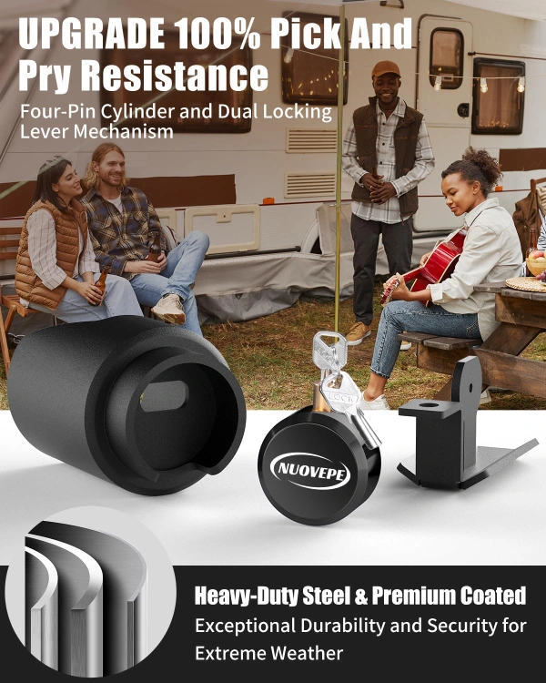 New Trailer Lock Fits 2 Inch Couplers, Secures Safety Chains Anti-Theft Ball Hitch Lock, Pry-Resistant & Heavy-Duty Trailer Hitch Locks for RV | Boat | ATV | Utility Trailer (Black), Brand New in the Box/Sealed Sells for $228+tax on Amazon https://www.amazon.ca/dp/B0FB3GW16T Features: DUAL‑DEFENSE VAULT‑SEAL: Picture attaching your safety chains to the inner‑slide ball mount, then sliding the lock’s inner slide into your 2 5/16″ coupler and engaging the latch. You’ll hear that gratifying “clack” as both chains and hitch fuse into a single, armored stronghold, leaving zero gaps for pry bars or chain cutters. Whether parked lakeside under the stars or at a crowded marina, NUOVEPE trailer lock guards your coupler and safety chains for unbeatable, two‑layer protection. Fortress‑Grade Brass Core: At the heart of NUOVEPE trailer tongue lock lies a precision‑machined brass cylinder armed with patented anti‑pick grooves and drill‑resistant pins. It’s the cryptographic equivalent of Fort Knox: bump keys, lock‑pick sets, and power drills all come up empty. With each turn of the key, you’re reminded that your RV, boat trailer, or motorcycle hauler is secured by one of the toughest cores on the market. ARMOR‑GRADE STEEL: Imagine the clang of a sledgehammer against hardened steel… and nothing giving way. Crafted from reinforced, heat‑treated steel housing, NUOVEPE trailer coupler lock absorbs crowbar assaults, grinder sparks, and brute‑force attacks like they’re child’s play. From dusty construction sites to rugged backcountry trailheads, whether it is Boat Trailer, ATV Trailer, Utility Trailer, or Campers Trailer, etc, it transforms every would‑be thief into a futile spectacle. ELEMENT‑PROOF PERFORMANCE: Whether drenched by salt spray at a marina, pelted by desert sandstorms, or buried in snowdrifts atop a mountain pass, NUOVEPE trailer locks ball hitch refuses to bow to corrosion or freeze. Its premium powder‑coat finish and fully sealed core shrug off moisture and rust, ensuring that everywhere remains as smooth as the day you mounted it—no maintenance, no worries. ONE‑CLICK LOCKDOWN: Say goodbye to fumbling with pins or wrestling with clumsy mechanisms. A single push of the patented puck‑style button locks your coupler in an instant. When it’s time to roll, three unbreakable keys ensure quick access and will have you back on the road in seconds. Quick to secure, quicker to free—NUOVEPE trailer hitch locks so you can spend less time fiddling and more time adventuring.