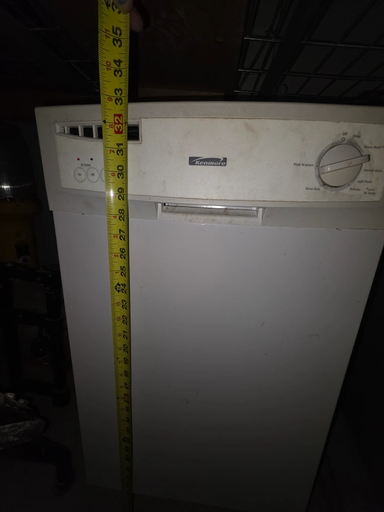 Selling a Kenmore dishwasher. It's about 35 inches tall and 18 inches wide. Ready to find a new home!