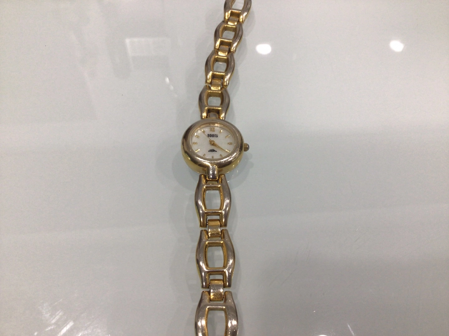 Selling a Roots ladies' watch. It has a gold and silver coloured band. It's in good condition and ready for a new home!