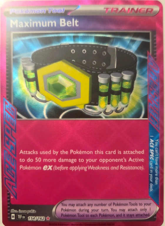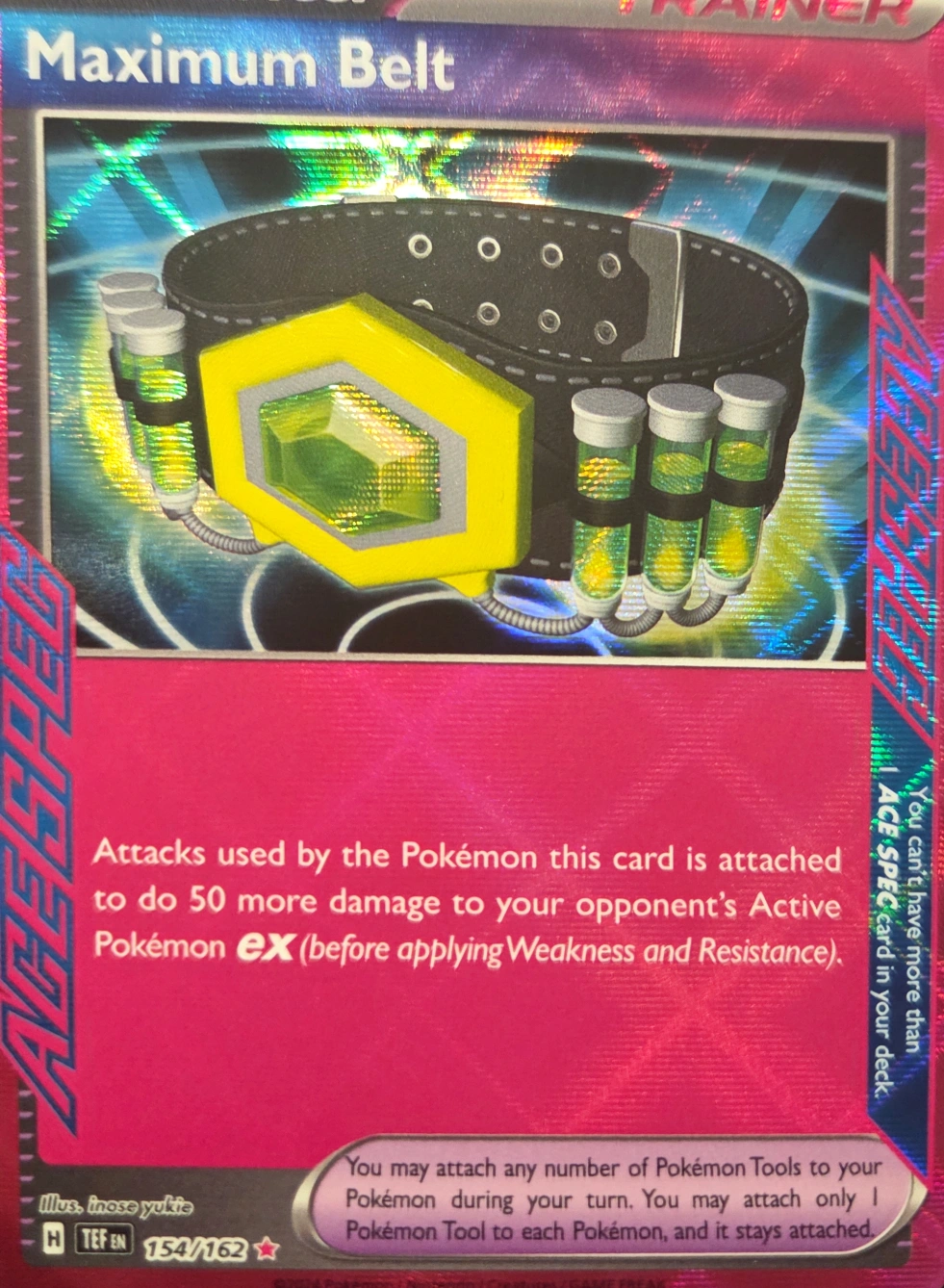 Selling a Pokemon Trainer card, Maximum Belt. It's in great condition and ready for a new home! Very good card to have in the collection. Acespec Rares do not come along often!