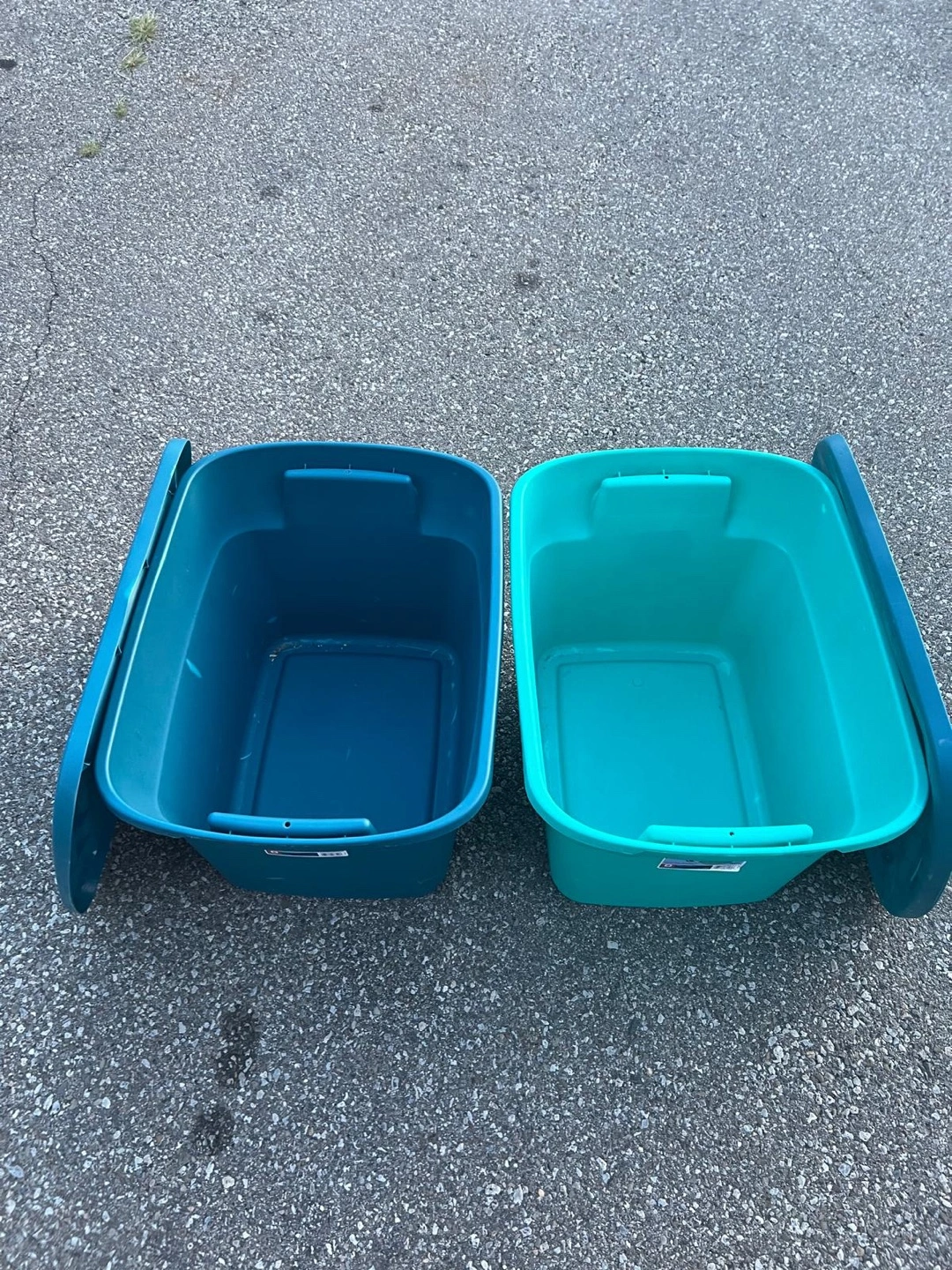 Selling two handy storage totes! One is a nice teal blue, and the other is a refreshing green. Perfect for decluttering and organizing your space