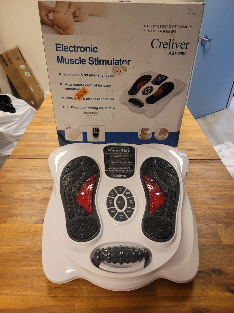 Selling a new Creliver AST-300A electronic muscle stimulator. It comes with the box and remote control. It has 25 modes and 99 intensity levels. It also has a clear LCD display and 0-45 minutes timing adjustable. Choose foot care massager and enjoy a healthier life! * Pick up in store at 258 Main Street South, Newmarket (by appointment only to guarantee we are open). *** Payable by cash, debit or credit ***