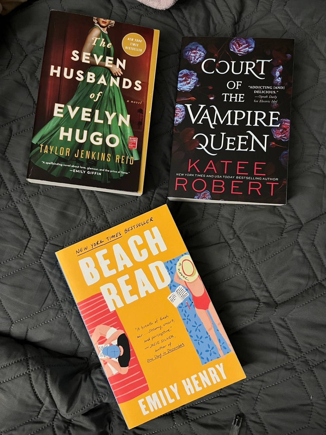 Selling a bundle of three popular books! Includes: - The Seven Husbands of Evelyn Hugo by Taylor Jenkins Reid - Court of the Vampire Queen by Katee Robert - Beach Read by Emily Henry Perfect for your next book club or a cozy night in!