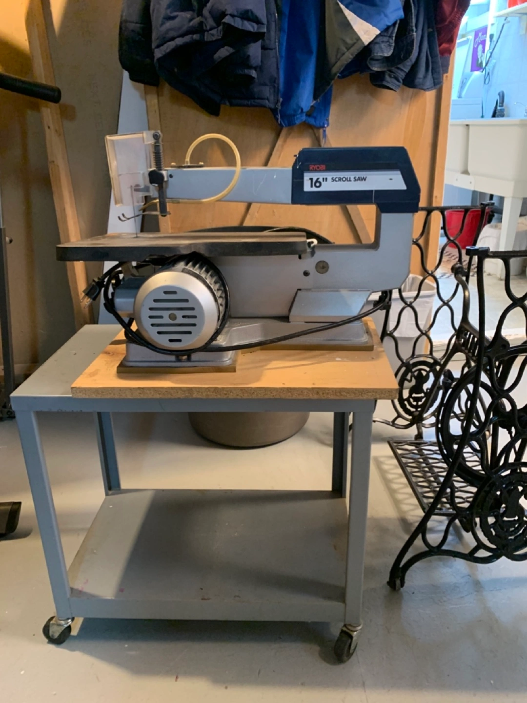 Selling a Ryobi 16" scroll saw. It's in used condition but still works great for your woodworking projects! Comes with the table on wheels.
