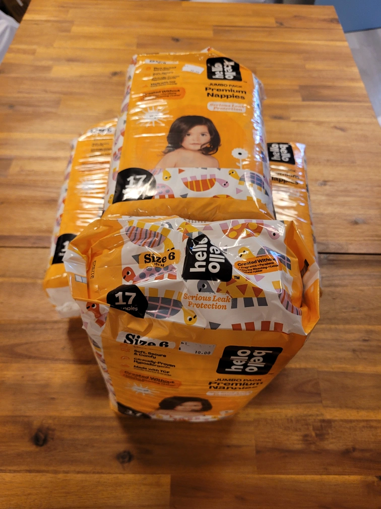 I have new Hello Bello jumbo pack premium nappies for sale. These are size 6, suitable for babies 16+ kg. They feature a plant-derived core liner and are soft, secure, and comfy. They are clinically-proven hypoallergenic and made with TCF (totally chlorine-free pulp). Created without fragrance, parabens, chlorine bleaching, and latex. Each pack contains 17 nappies. *** 4 AVAILABLE *** * Pick up in store at 258 Main Street South, Newmarket (by appointment only to guarantee we are open). * Payable by cash or by e-transfer (payable to robdrealtor@gmail.com.