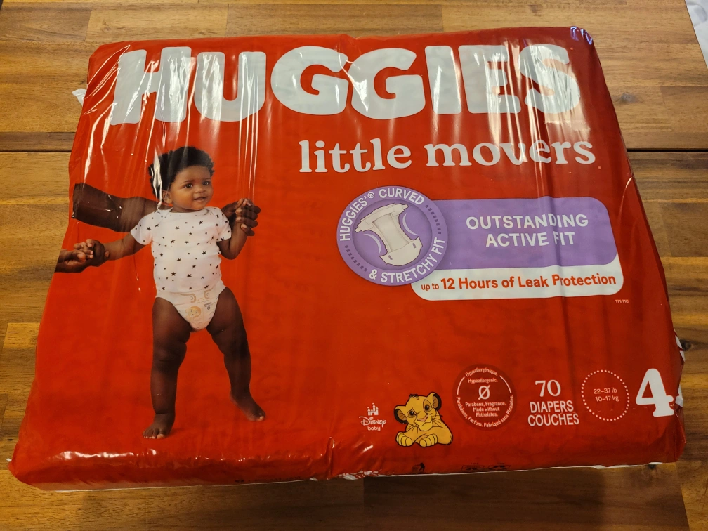 Selling a new pack of Huggies Little Movers diapers, size 4. The pack contains 70 diapers, perfect for babies weighing 22-37 lbs (10-17 kg). They offer up to 12 hours of leak protection and have a curved and stretchy fit for active babies. Hypoallergenic, and made without parabens, fragrance, or phthalates. * Pick up in store at 258 Main Street South, Newmarket (by appointment only to guarantee we are open). *** Payable by cash, debit or credit ***