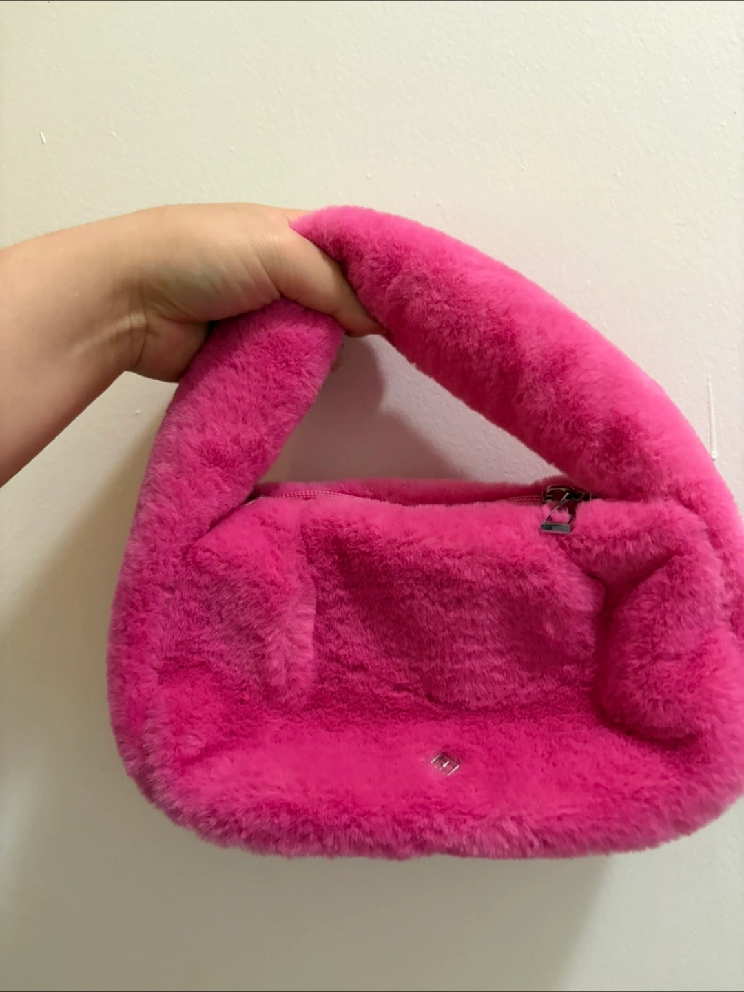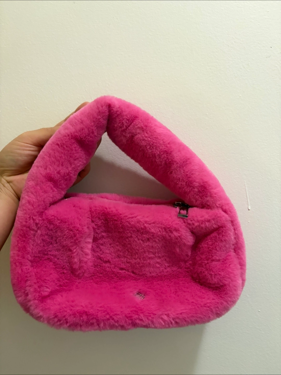 Selling a collection of women's handbags! There's an ANAP tote bag with a red lip print, a furry pink purse, and a black leather bag with chain detailing. All in good condition and ready for a new home Price for 3