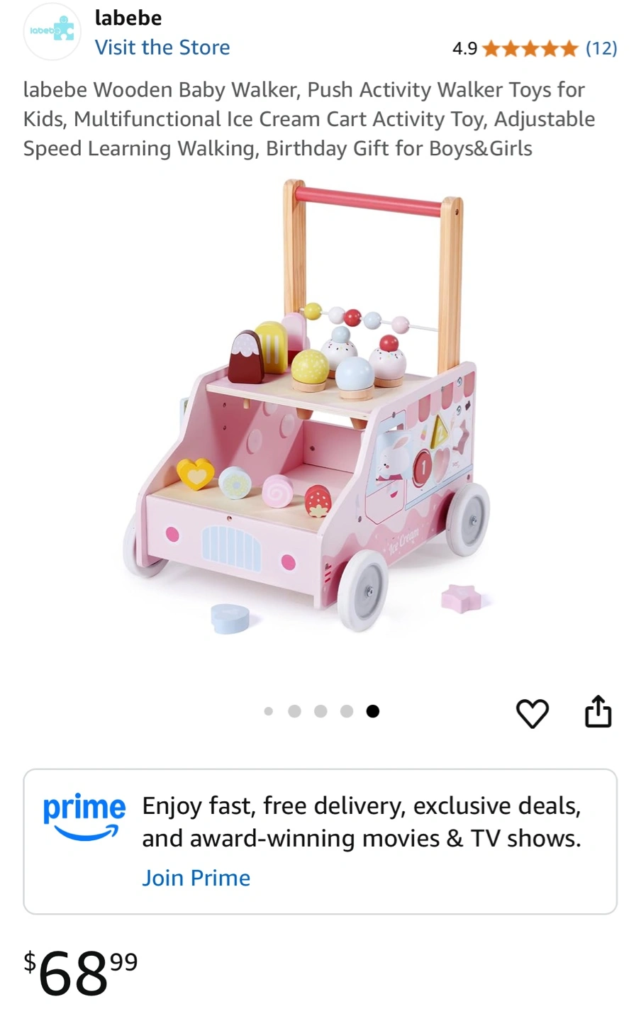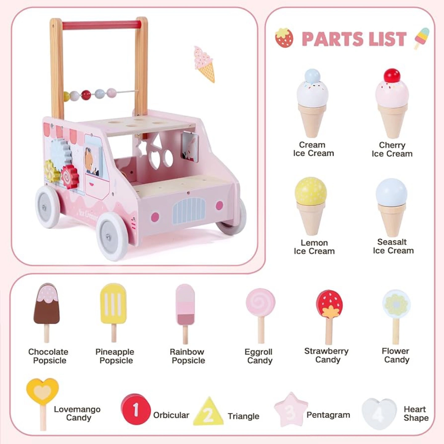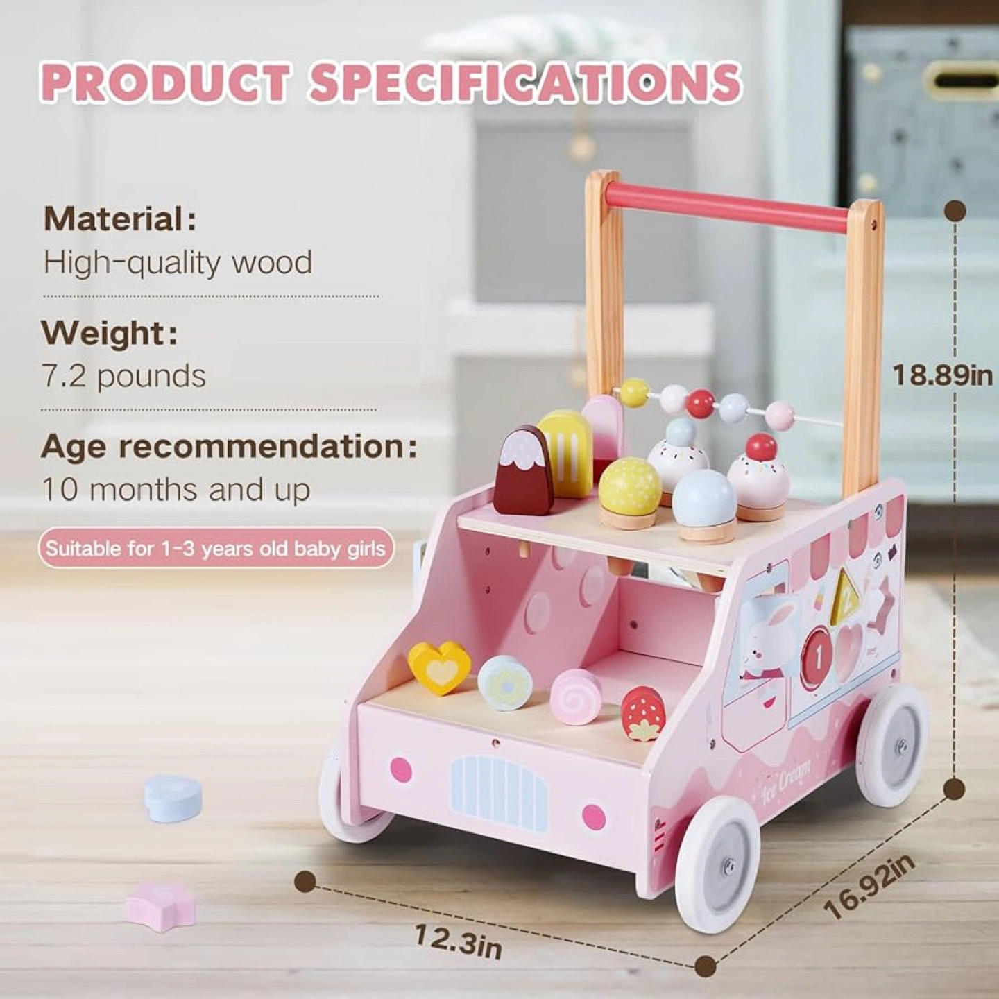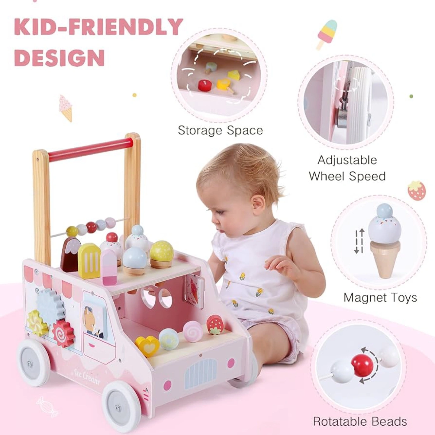 Brand new labebe Wooden Baby Walker, Push Activity Walker Toys for Kids, Multifunctional Ice Cream Cart Activity Toy, Adjustable Speed Learning Walking A great Birthday Gift for Girls Price is FIRM No holds no delivery Pickup at Cedarhill crescent Kitchener