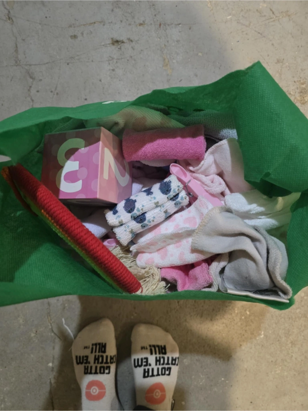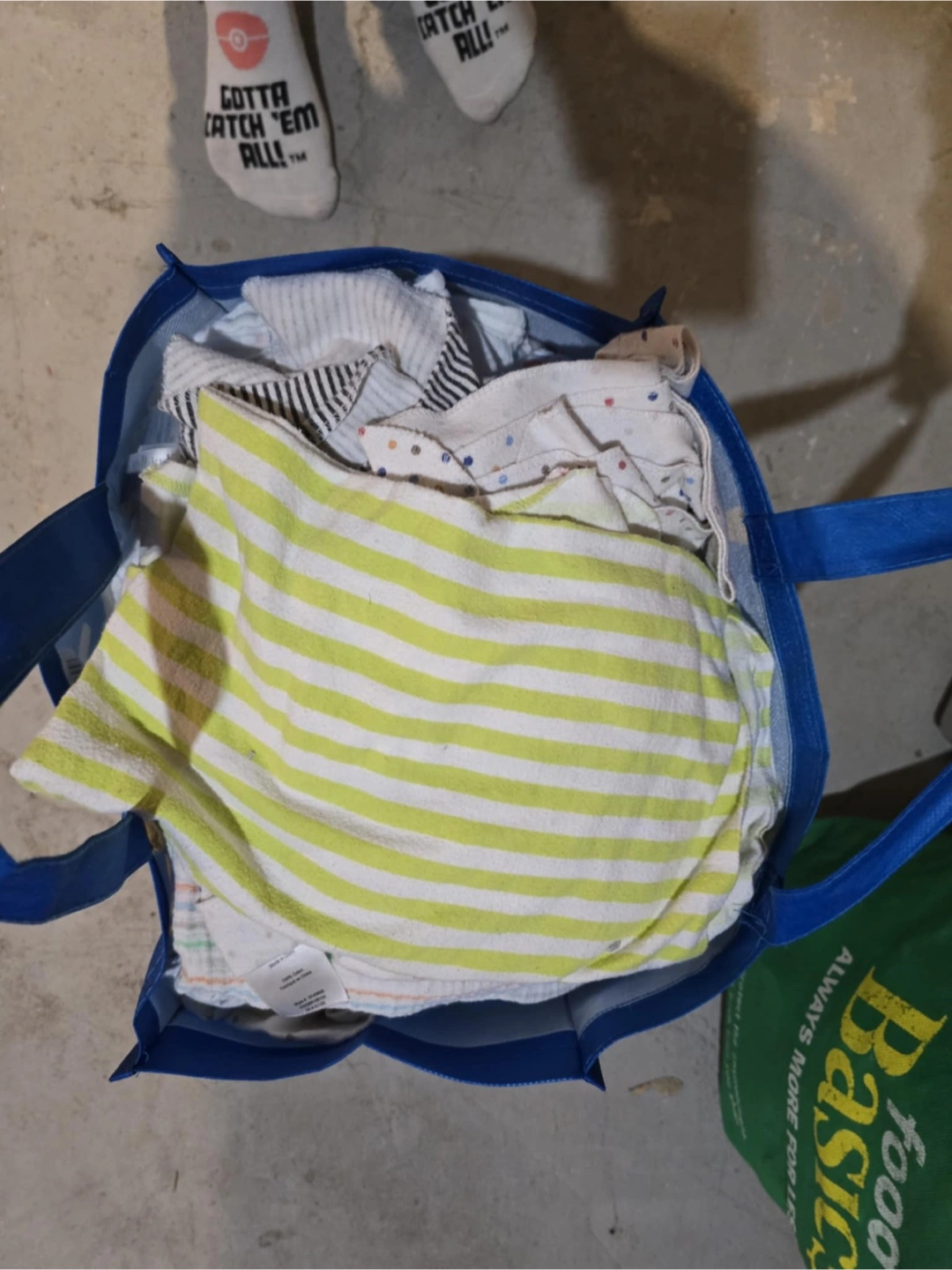 2 bags full of baby clothes, swaddle blankets and more. Clothes are various sizes