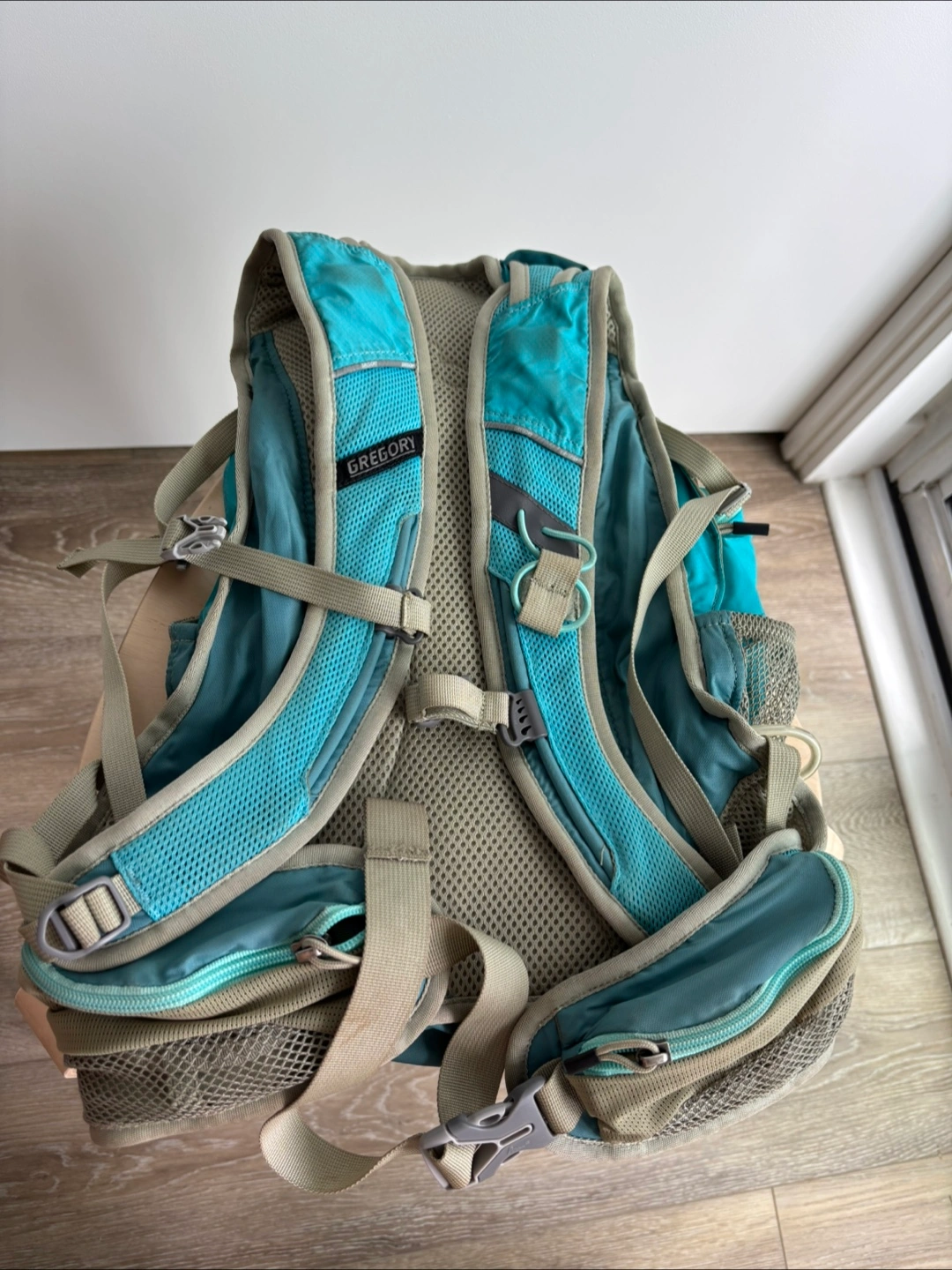 Currently decluttering and selling a women’s Gregory Navarino 12 daypack. It has lots of compartments and can fit a hydration pack. Perfect for hiking and traveling. I took this with me during race days and exploring Kenya. There’s a little bit of the liner rubbing off, which you can see slightly in the last photo. I cleaned it, but other than that it’s still in great condition. Product details: - Aero Mesh backpanel - Hydration port and sleeve with tube management system - Full back zippered access to load and fill up to a 3L reservoir (not included) - Front stretch-mesh pocket with three-point compression system - Dual waistbelt pockets - Side mesh pockets - Removable discrete pocket - Interior mesh organizer and key clip - Webbing loop for bike light or reflector
