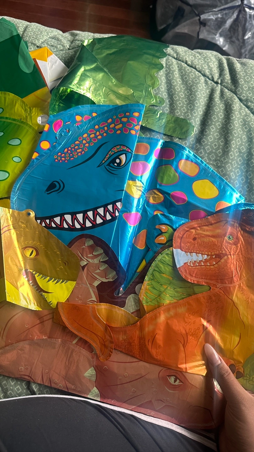 A bunch of dinosaur-themed foil balloons for a party or special occasion! There are various colours and dinosaur designs included. Please checkout my other listings here: Facebook Marketplace ⬇️ https://www.facebook.com/marketplace/profile/100007661023198/?ref=permalink&mibextid=6ojiHh