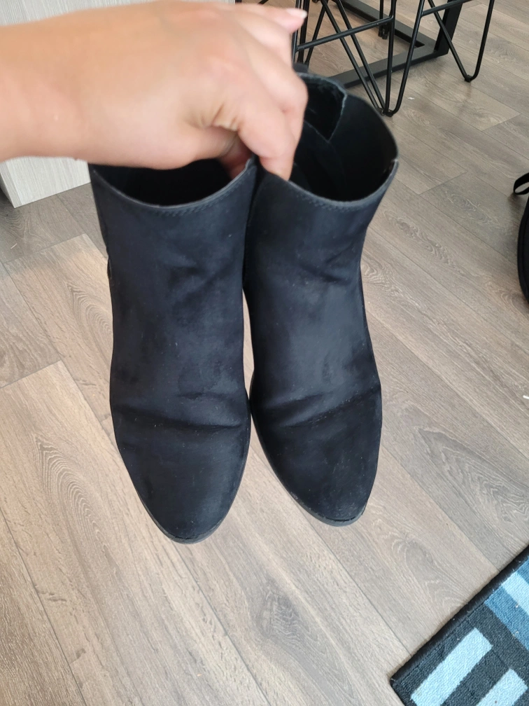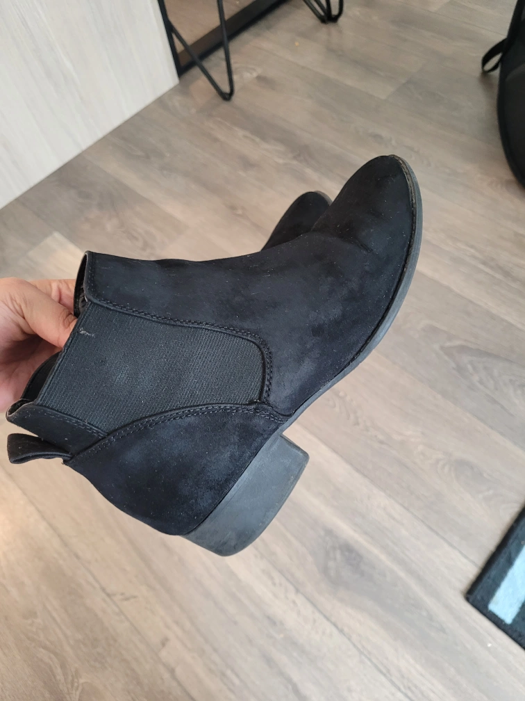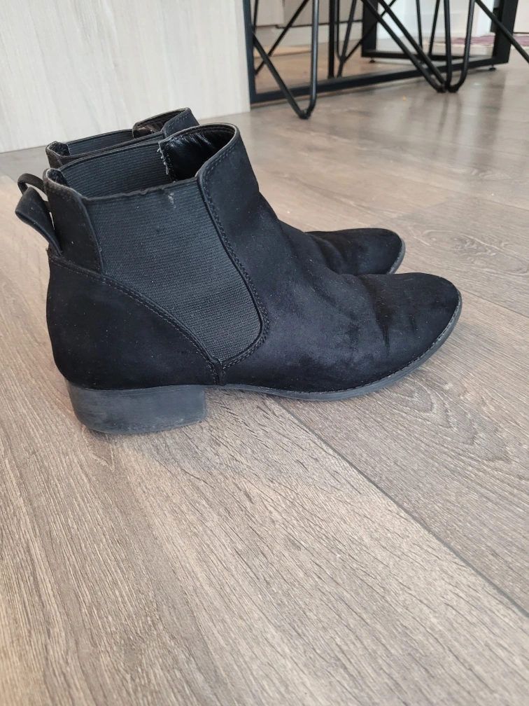 Selling a pair of black ankle boots. They're in good condition and would be perfect for fall or winter. They have a bit of a heel and a comfortable elastic panel on the sides. Originally bought from The Bay for $50