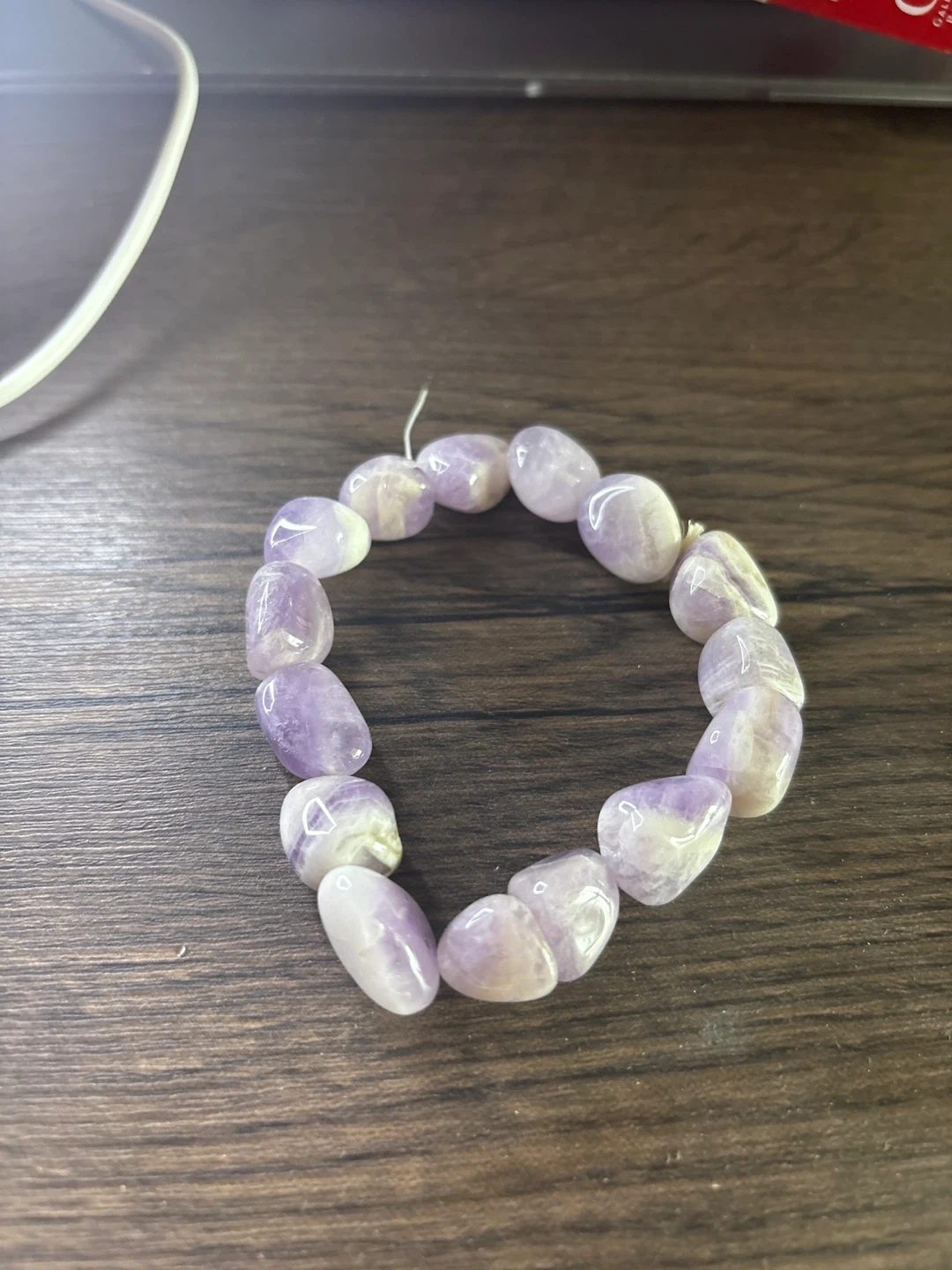 Selling a handmade bracelet featuring beautiful amethyst stones. The stones have a lovely light purple colour. It's a unique piece to add to your collection!