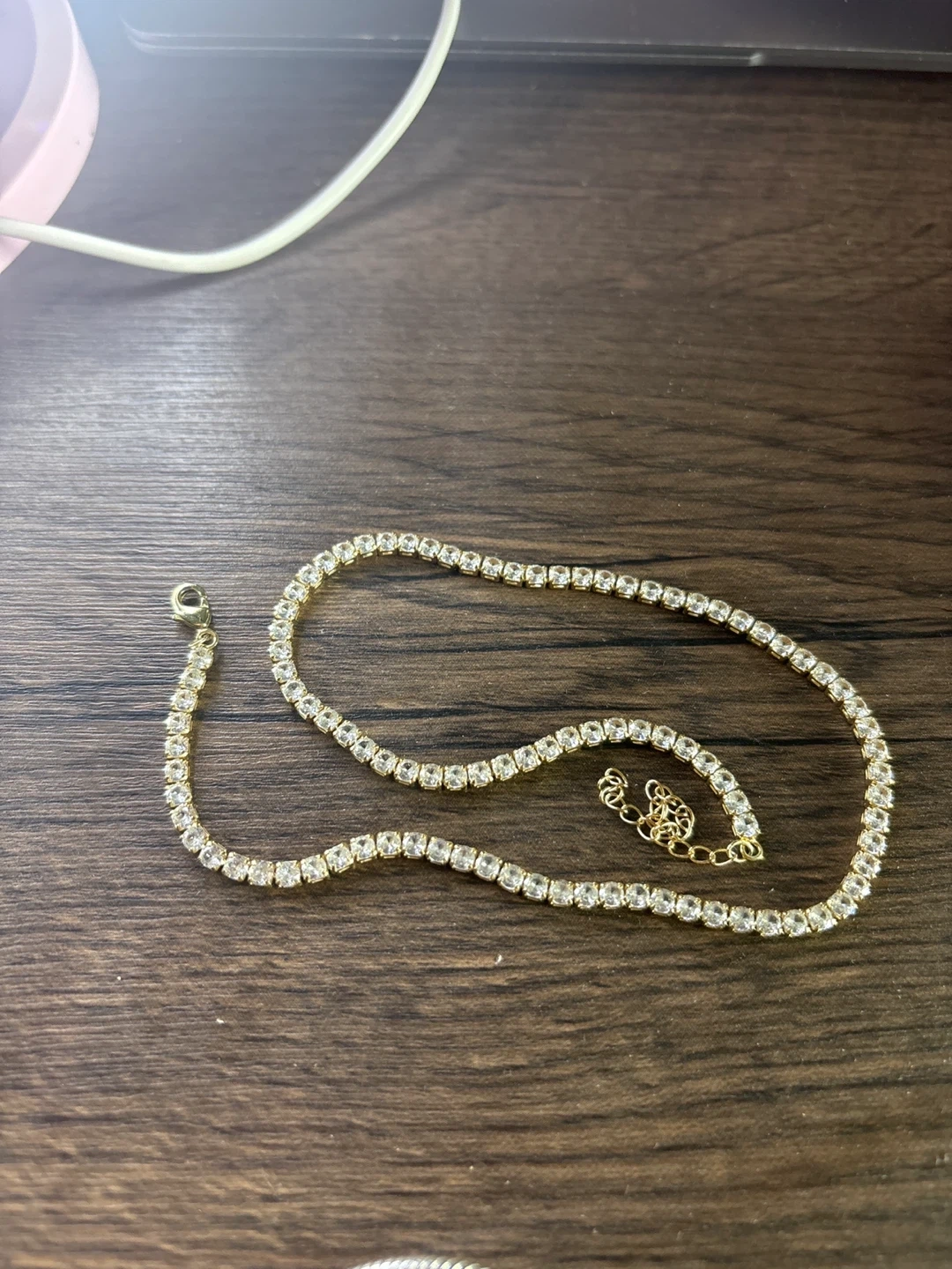 Selling a beautiful gold tennis necklace. It's in great condition and adds a touch of sparkle to any outfit!