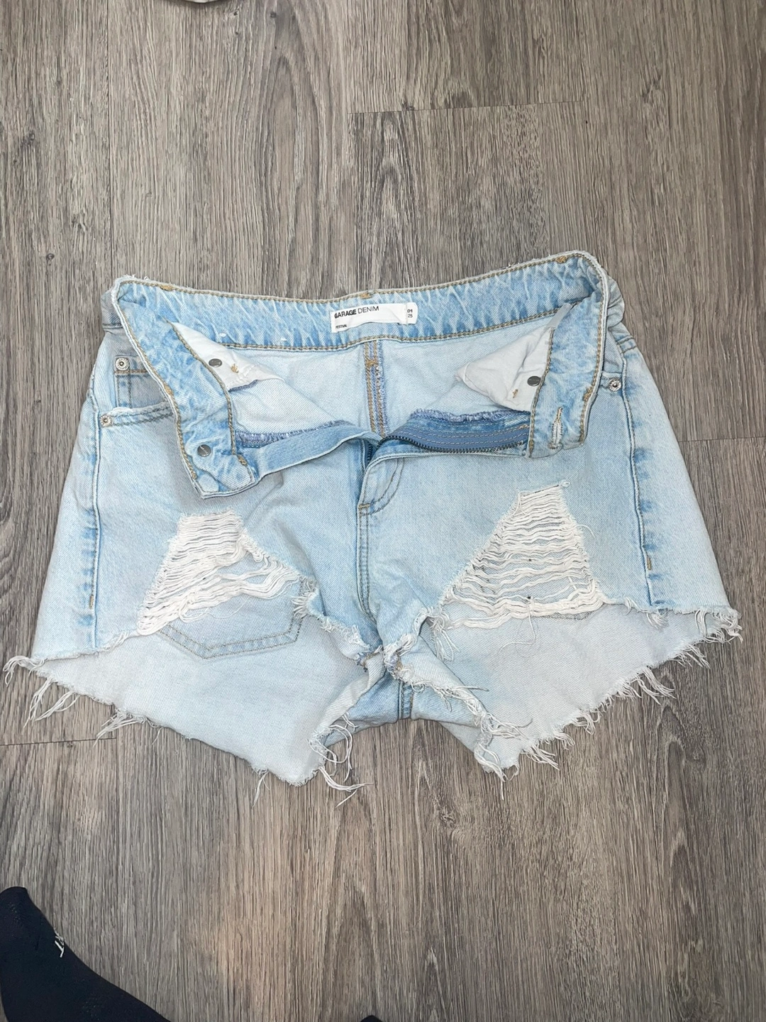 Cute pair of Garage Denim shorts in size 26! They're a light wash denim with trendy ripped detailing. Perfect for summer!