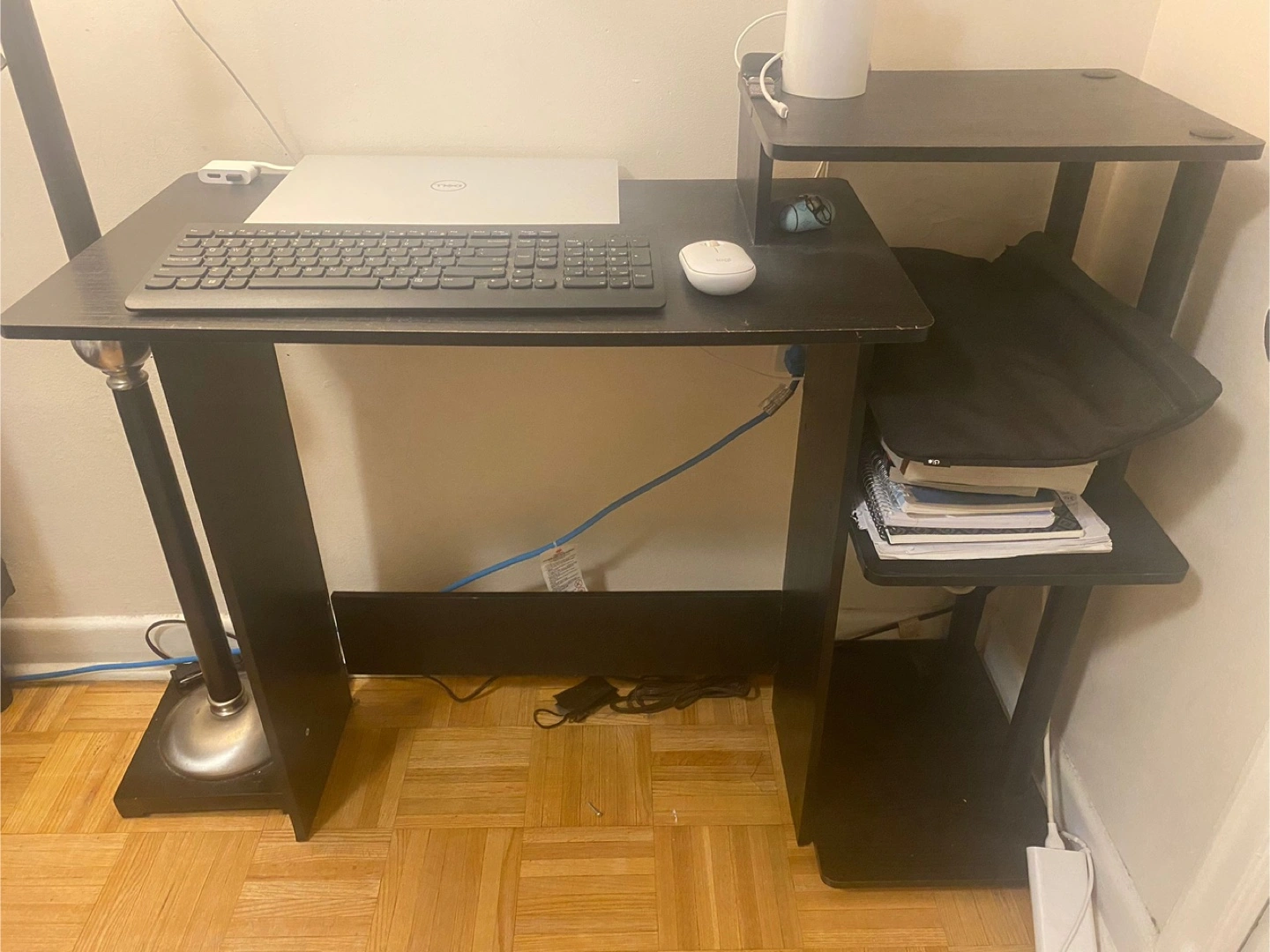 Moving! need to go asap!!! Giving away a black computer desk that's perfect for a small space! It features a sleek design with built-in shelves for extra storage. Great for students or anyone working from home. It's in fair condition and does not serve my purpose anymore! pick up only! 1st come 1st serve basis, no holding please 🙏