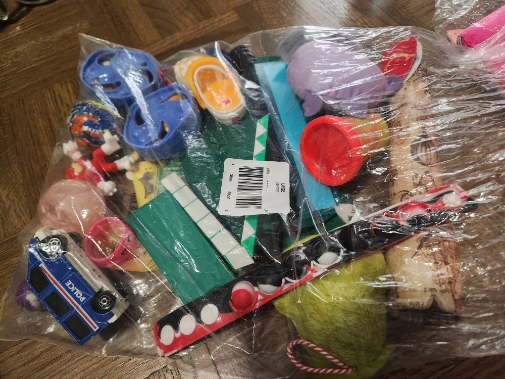 small bag of mixed toys. McDonald's toys/loot bag stuff. There's a variety of items inside. take all.