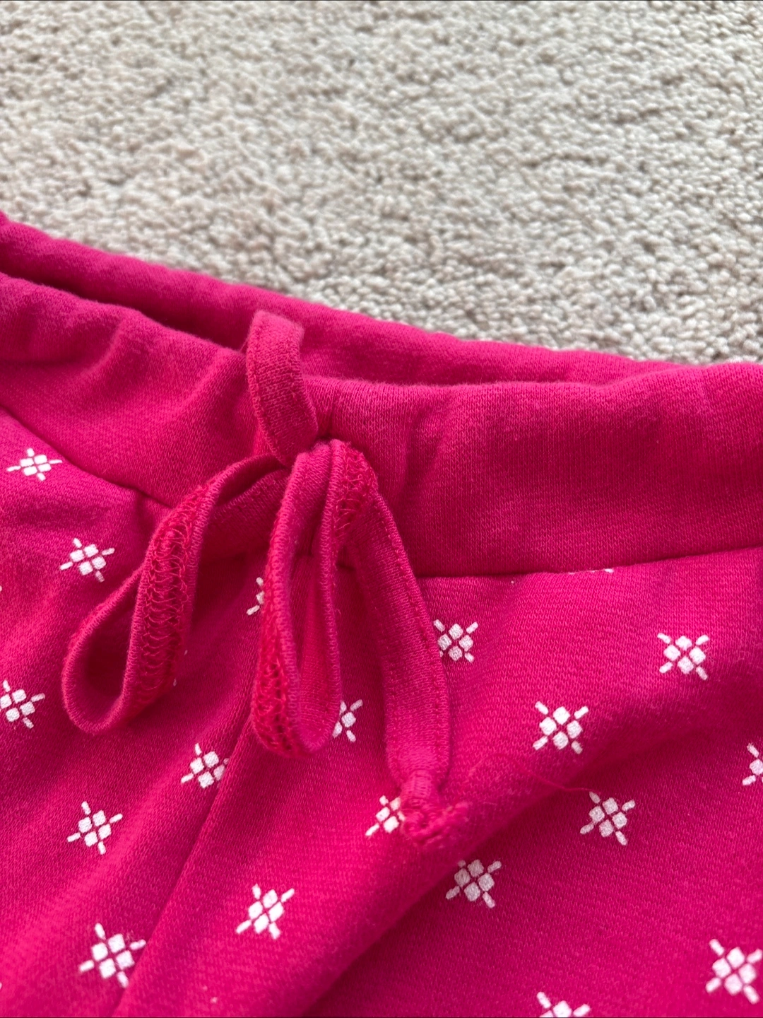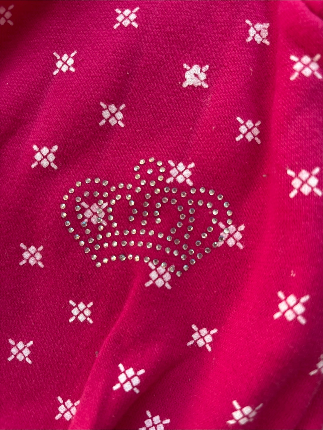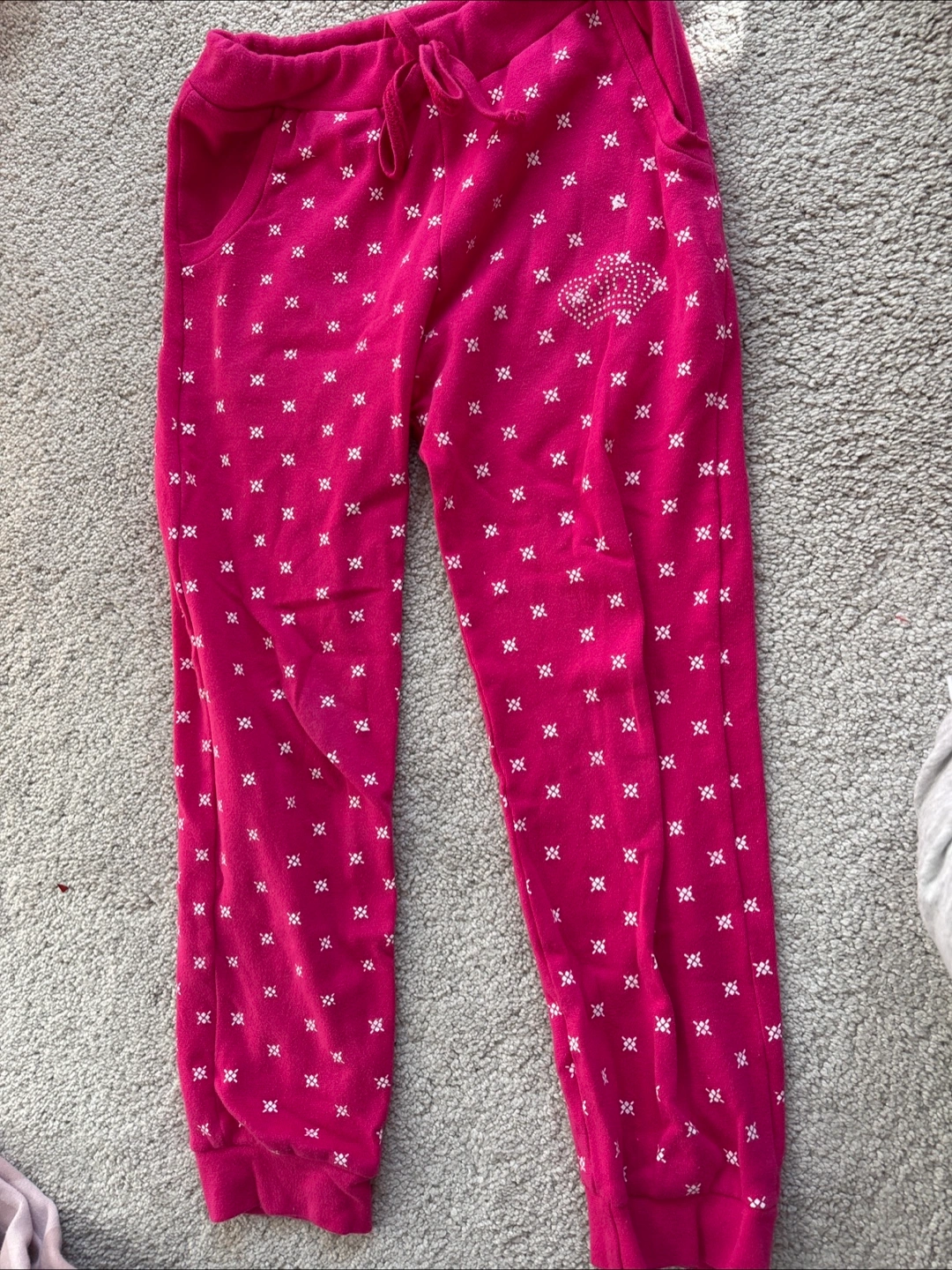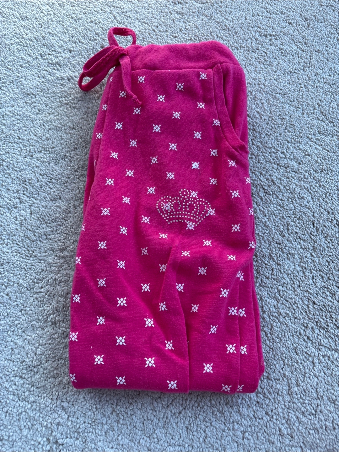 Cozy up with these comfy pink lounge pants! They feature a cute crown print and an all-over white floral pattern. Perfect for relaxing at home or running errands.