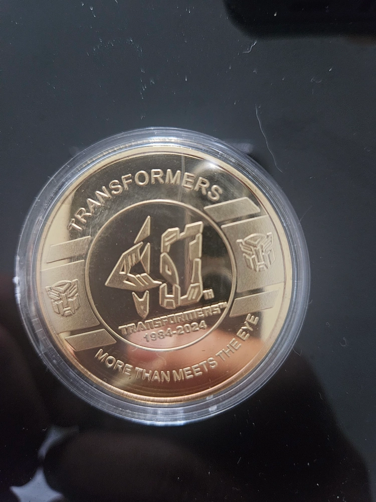 Selling a Transformers 40th Anniversary coin. It celebrates the 40th anniversary of Transformers, from 1984-2024. The coin features Arcee and the Autobot logo.