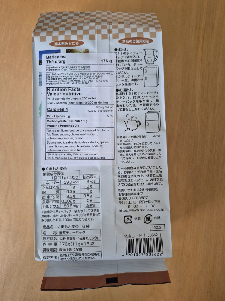 Fresh big bag/box of lovely high-quality Japanese roasted barley tea. Can be brewed hot or cold. Super refreshing for summer. These are large bags: a single bag makes about a litre, and is brewed in a teapot (hot) or jug (cold). Wonderful roasty flavour. Zero caffeine, zero calories. Very healthful and good for digestion. Bought yesterday, super fresh. BB date in photos. There were 16 large teabags (11g each!) and I used one so there are 15 bags left. I love this stuff but we ended up with 2 bags.
