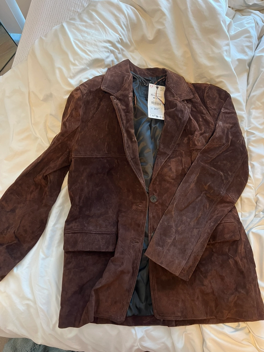 Selling a Zara suede blazer in size XS. New with tags.Originally bought for $269.00. Perfect for adding a touch of style to any outfit!
