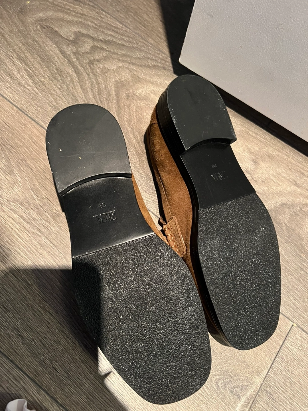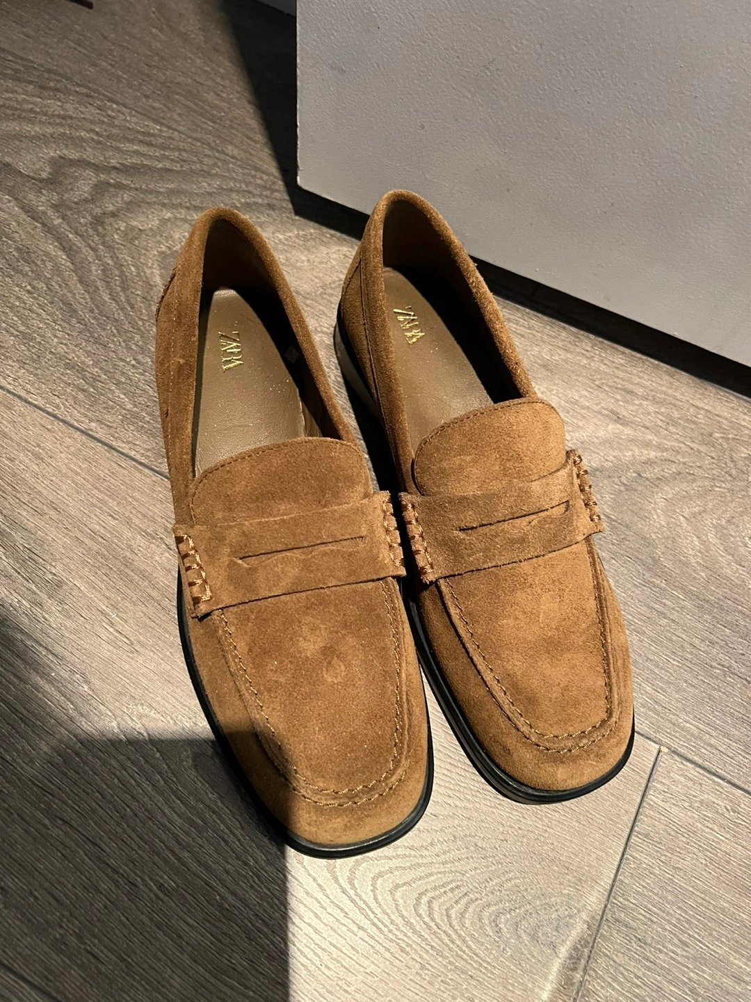 Selling a pair of Zara brown suede loafers. Unworn size 38. Real leather Original price was 80$