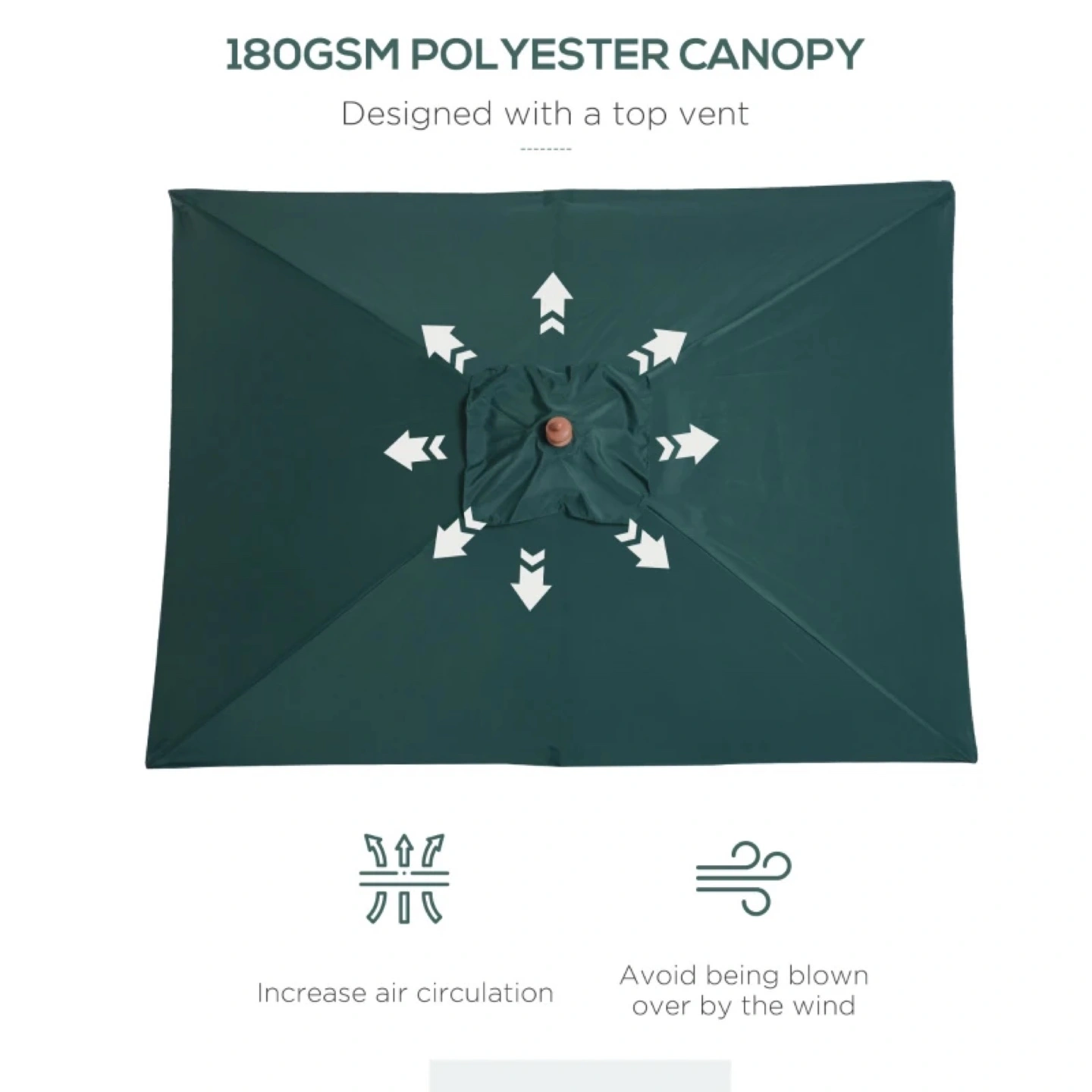 This patio umbrella is perfect for providing shade on sunny days! - Dimensions: 78.7" x 59.1" (200 cm x 150 cm) - Height: 92.5" (235 cm) - Features a tilt design for full sun protection - Easy open & close with a manual pull rope system