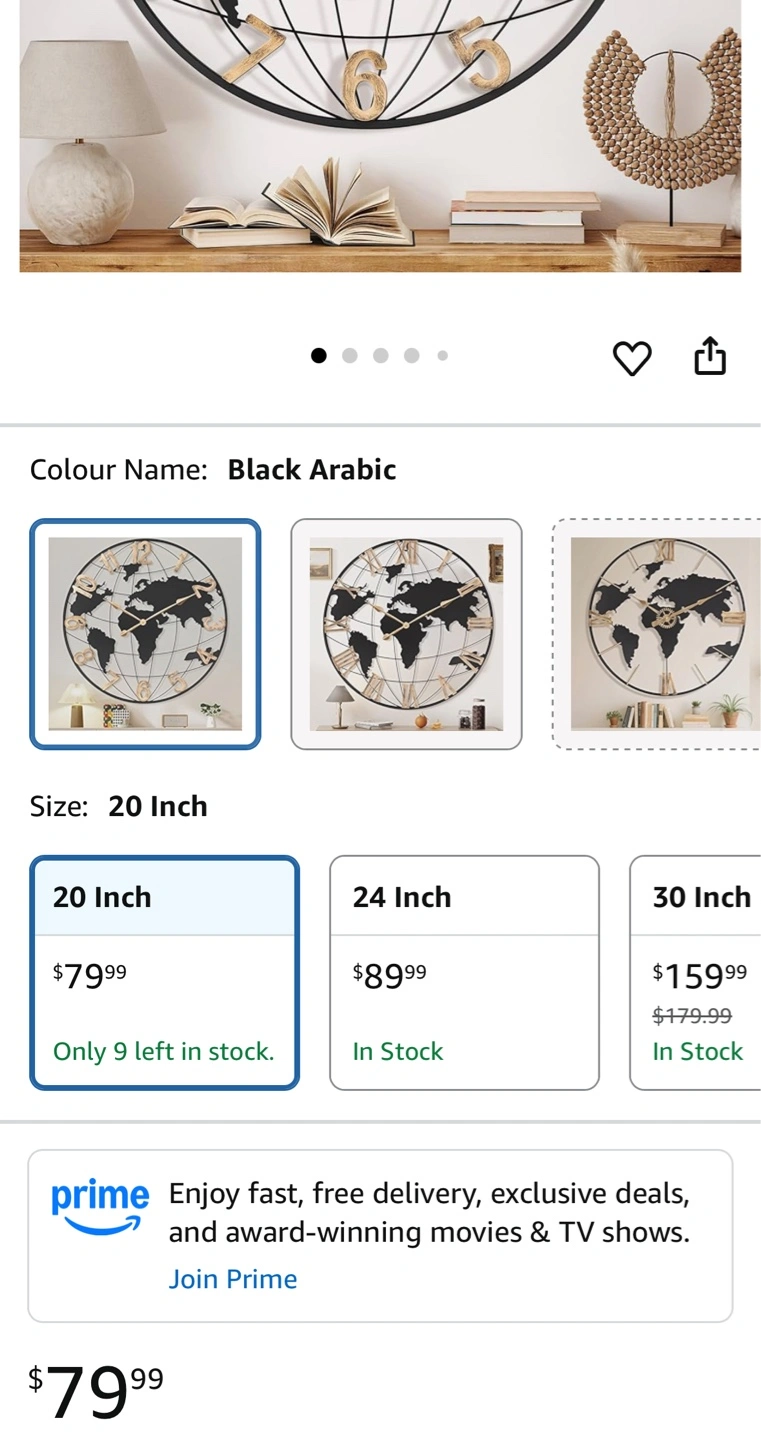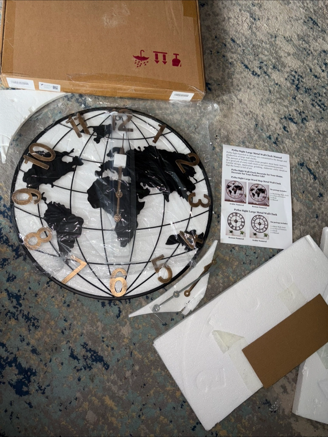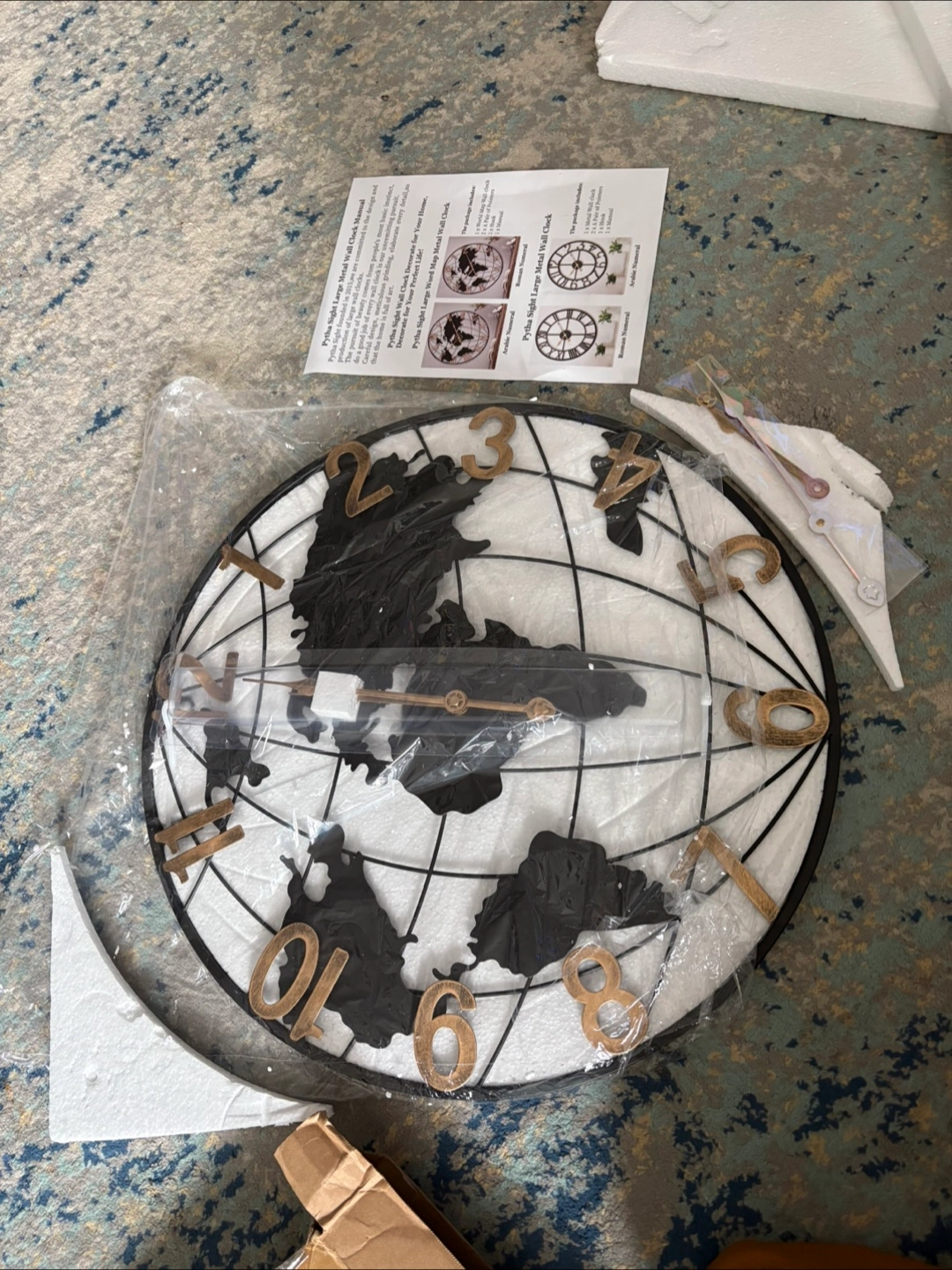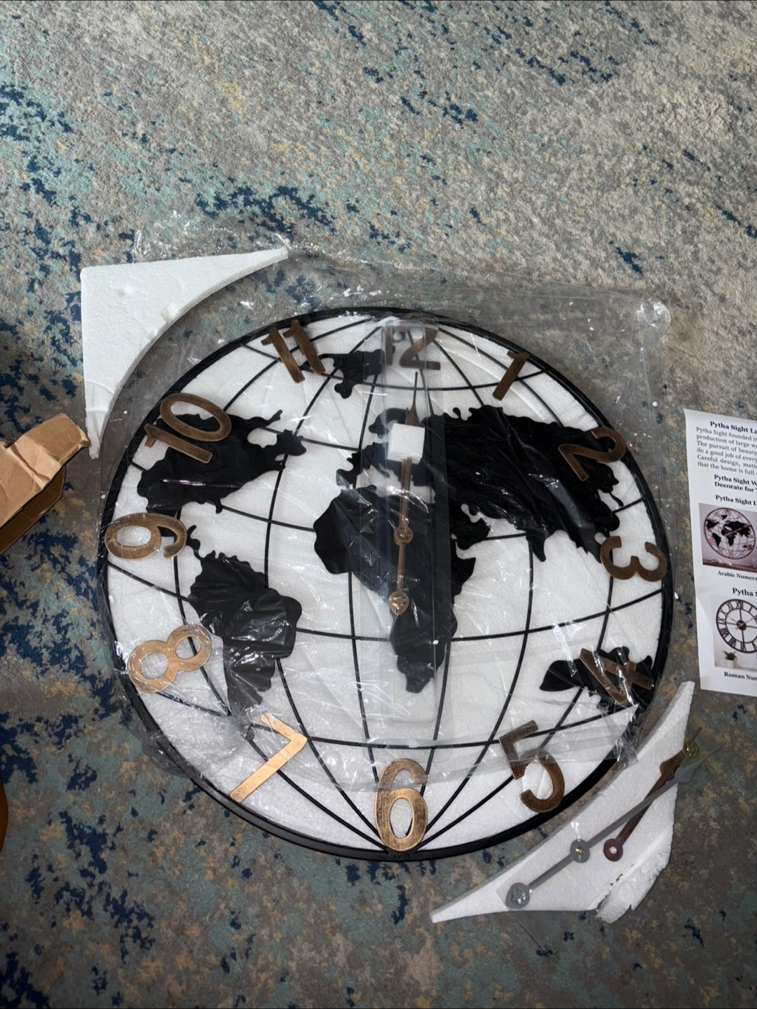 Brand New Pytha Sight 20 Inch Large Wall Clocks for Home Decor,Big Farmhouse Modern Decorative Metal World Map Wall Clock Oversized with Vintage Gold Arabic Numeral for Office,Living Room,Kitchen,Dining Room 20 Inch No holds no delivery Fastest pickup preferred
