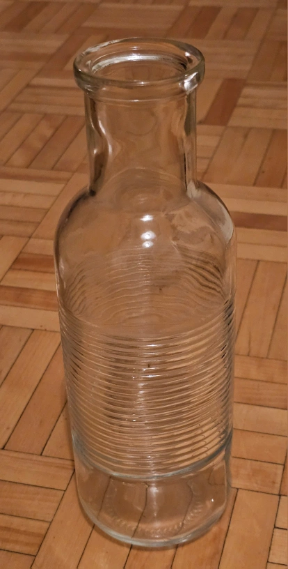 Our favourite. A glass bottle with rigged design. Like new, barely used.