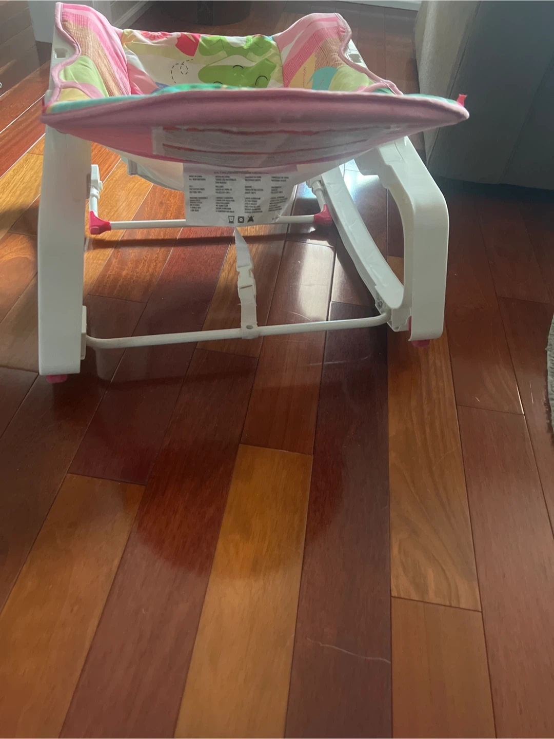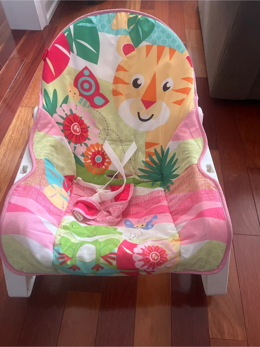 Selling a Fisher-Price baby bouncer in great condition! It has a colourful design with a tiger, butterfly, flowers, and frog pattern. Perfect for keeping your little one entertained and comfortable.