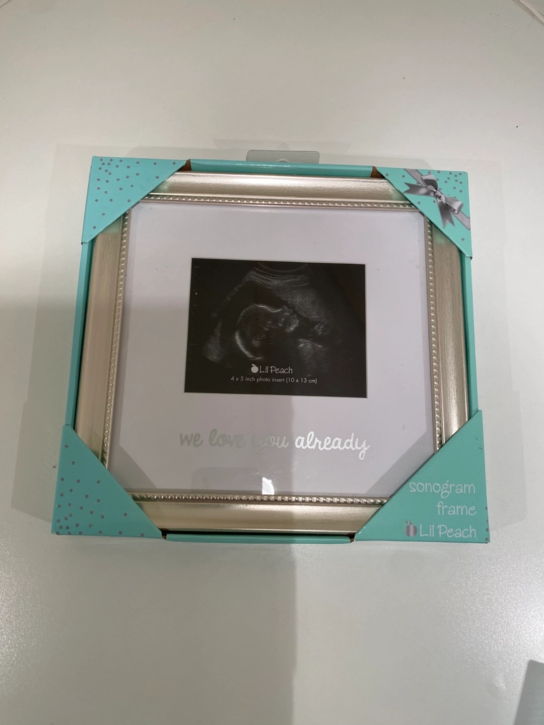 Selling a brand new Lil Peach sonogram frame, still in its original packaging! It's the perfect way to display that precious first glimpse of your little one. The frame is designed to hold a 4x5 inch photo insert, making it a sweet keepsake to cherish those early memories