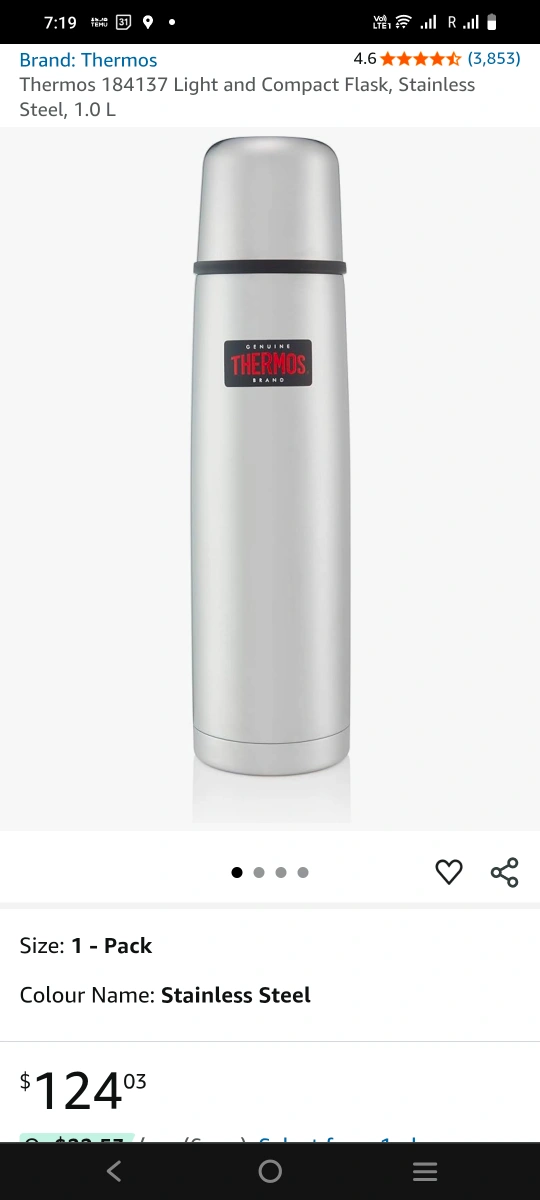 Selling a Thermos light and compact flask. It's stainless steel and holds 1.0L. This retails for $124.03! https://www.amazon.ca/Thermos-Light-Compact-Stainless-Steel/dp/B003GIS4RY p/s: check my other listings. Buy 2, get 10% off. Buy 3, get 15% off. Buy 4+, get 20% off. 😉