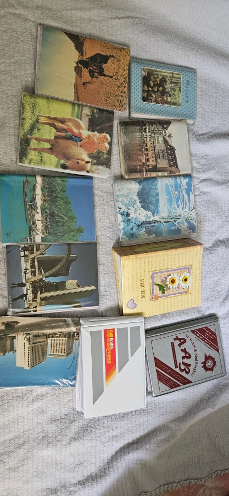 Selling a collection of photo Albums with plastic photo leaves various images. Includes a Kodak Express Album to safeguard your precious memories. All for $6 or $0.50 or 50 cents each