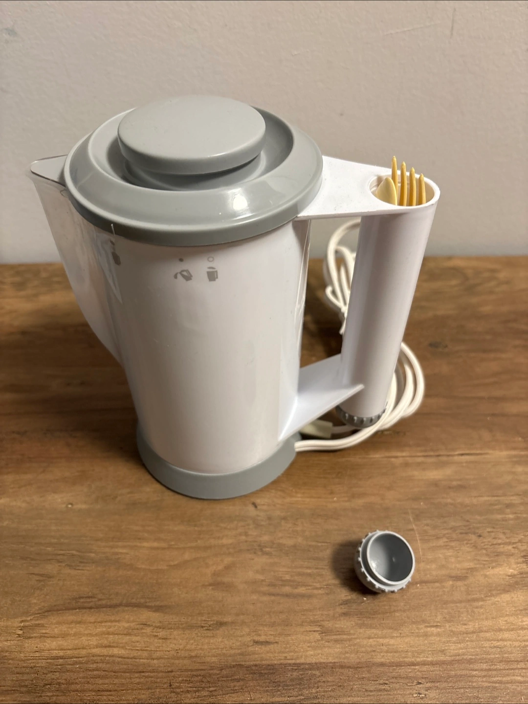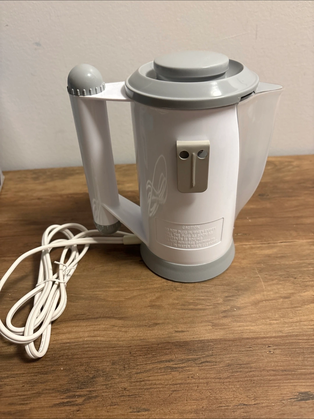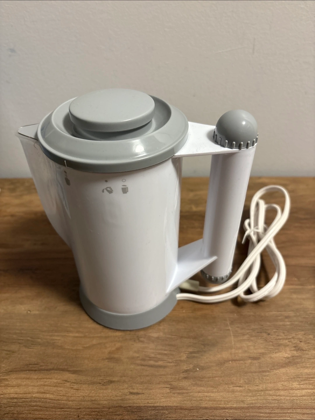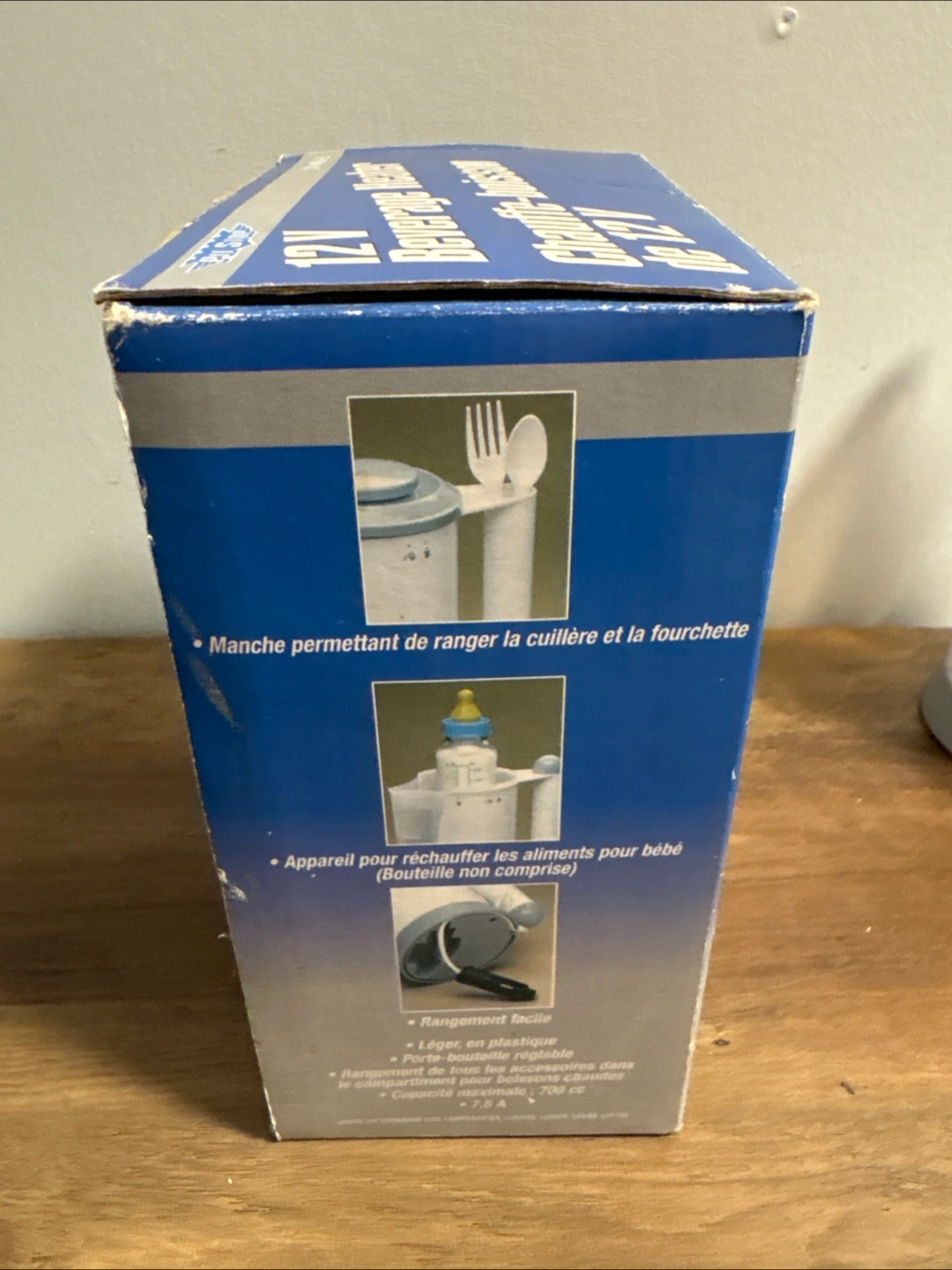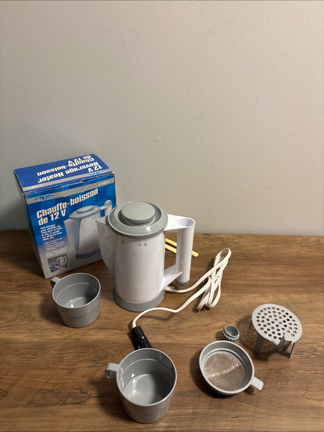 Selling a Pit Stop 12V Beverage Heater, still in its original box! It's perfect for heating water for coffee, tea, soup, or baby food. The box includes two coffee cups, a filter, a spoon and fork, and a baby food stand. A handy item to have!