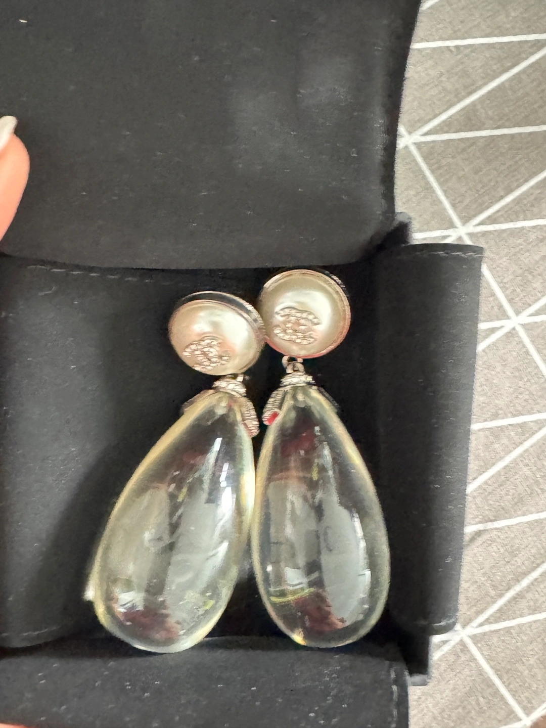 These elegant drop earrings feature a unique design with pearl accents and clear drops. They come complete with the original Chanel box and pouch, making them perfect for gifting or safekeeping. A timeless addition to any jewellery collection!