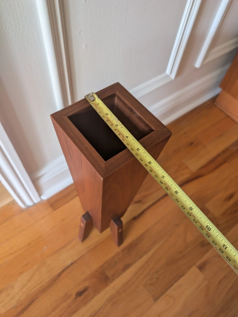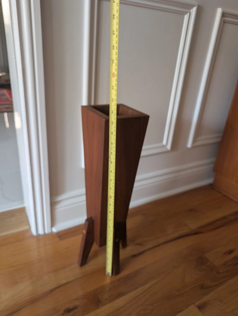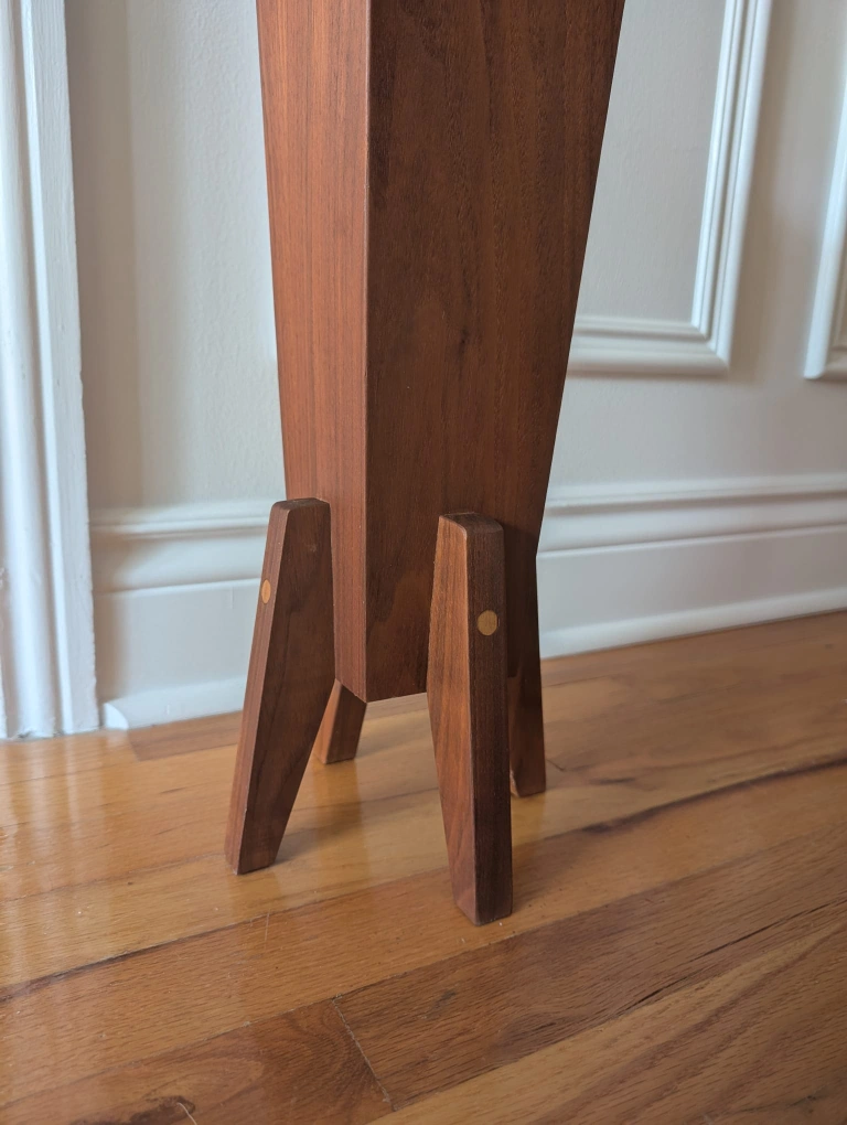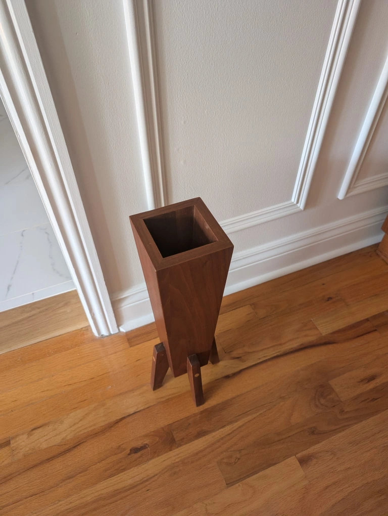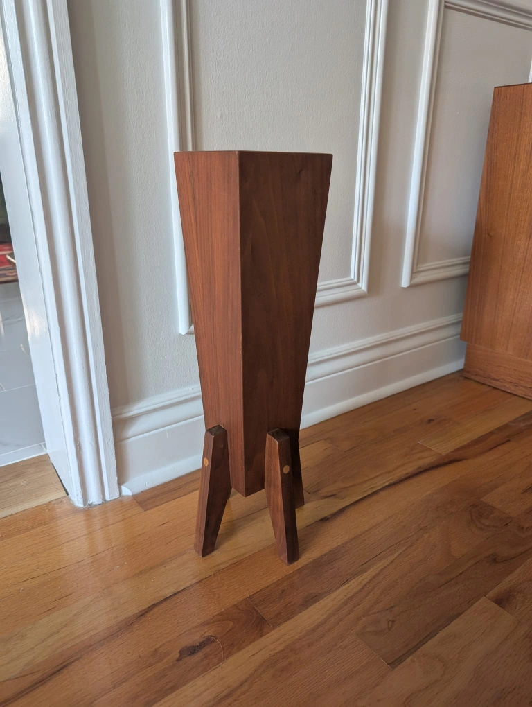 Selling a wooden plant stand. It's in great shape and ready to display your favourite plant. It has a unique design and would look great in any room!
