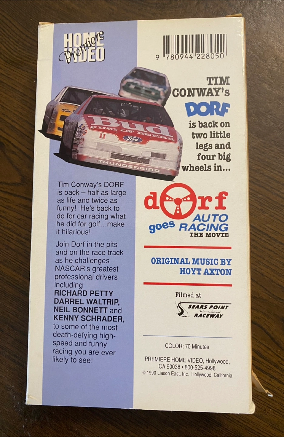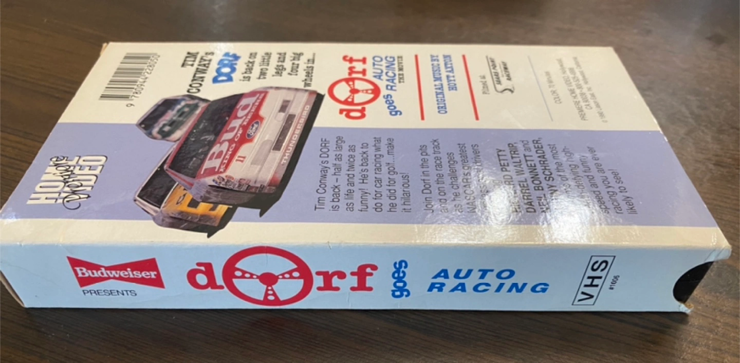 Selling a VHS tape of Tim Conway's Dorf Goes Auto Racing! It's a hilarious movie where Dorf is back on two little legs and four big wheels. Join Dorf in the pits and on the race track as he challenges NASCAR's greatest professional drivers!