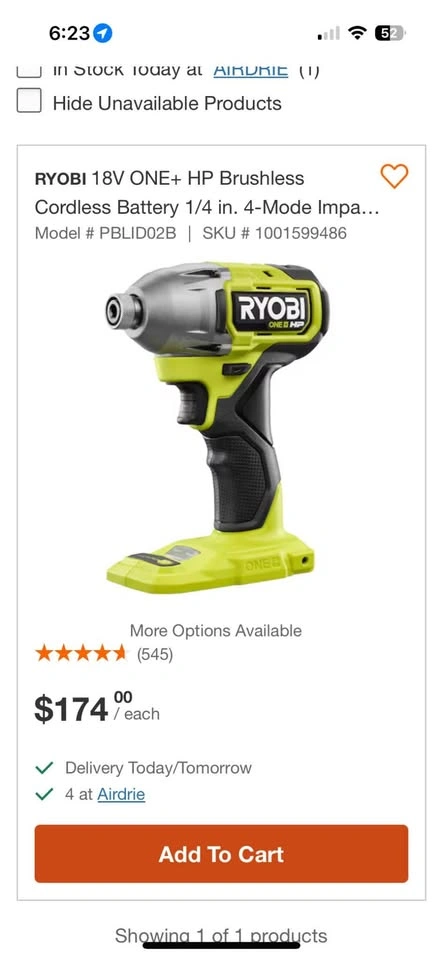 RYOBI 18V ONE+ HP Brushless Cordless Battery 1/4 in. 4-Mode Impact Driver. Brand new still in unopened box. Pick up in SW Airdrie