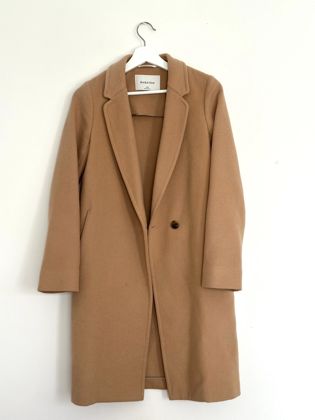 Selling a Babaton camel-coloured coat in size XXS. It's in great shape and ready for a new home. Perfect for layering during the cooler months! Like-new, too small for me now. $100 non negotiable Can meet Markham (hwy7/ninth line) Or downtown (king and Peter st)