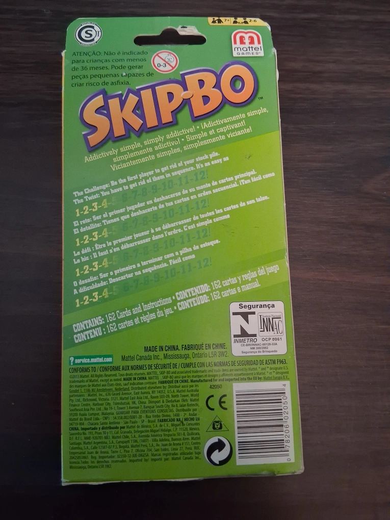 Get ready for some family fun with Skip-Bo! This card game is addictively simple and super captivating. The goal is to be the first player to get rid of your stock pile by sequencing cards from 1-12. It includes 162 cards and instructions, so you're all set to play. Suitable for ages 7+ and 2-6 players