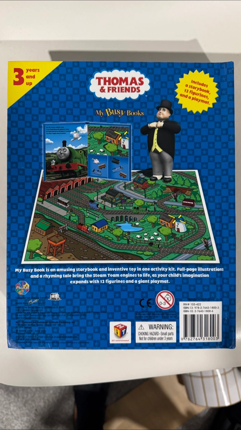 I'm selling a Thomas & Friends My Busy Book! This amazing storybook and inventive toy is great for kids 3 years and up. It includes a storybook, 12 figurines, and a playmat for hours of fun and imaginative play