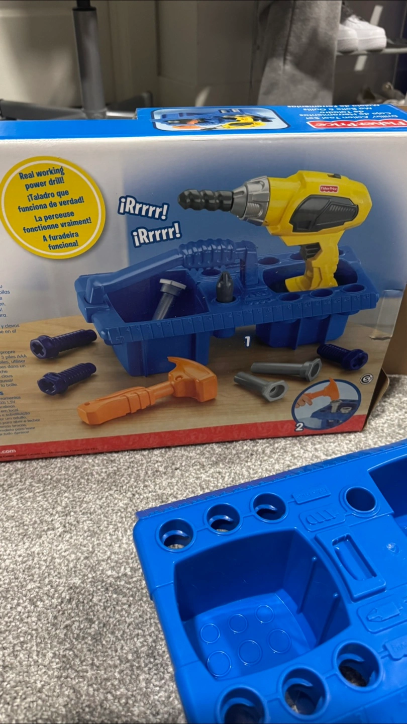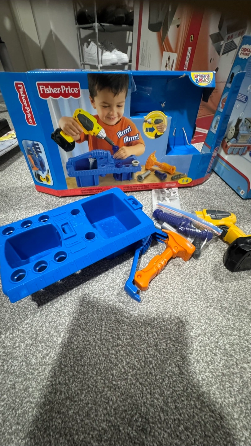Selling a Fisher-Price Brilliant Basics Workbench! This toy is perfect for little ones aged 2-6 years old. It comes with a working power drill and other tools to keep your child entertained for hours. Includes the box and all original components!